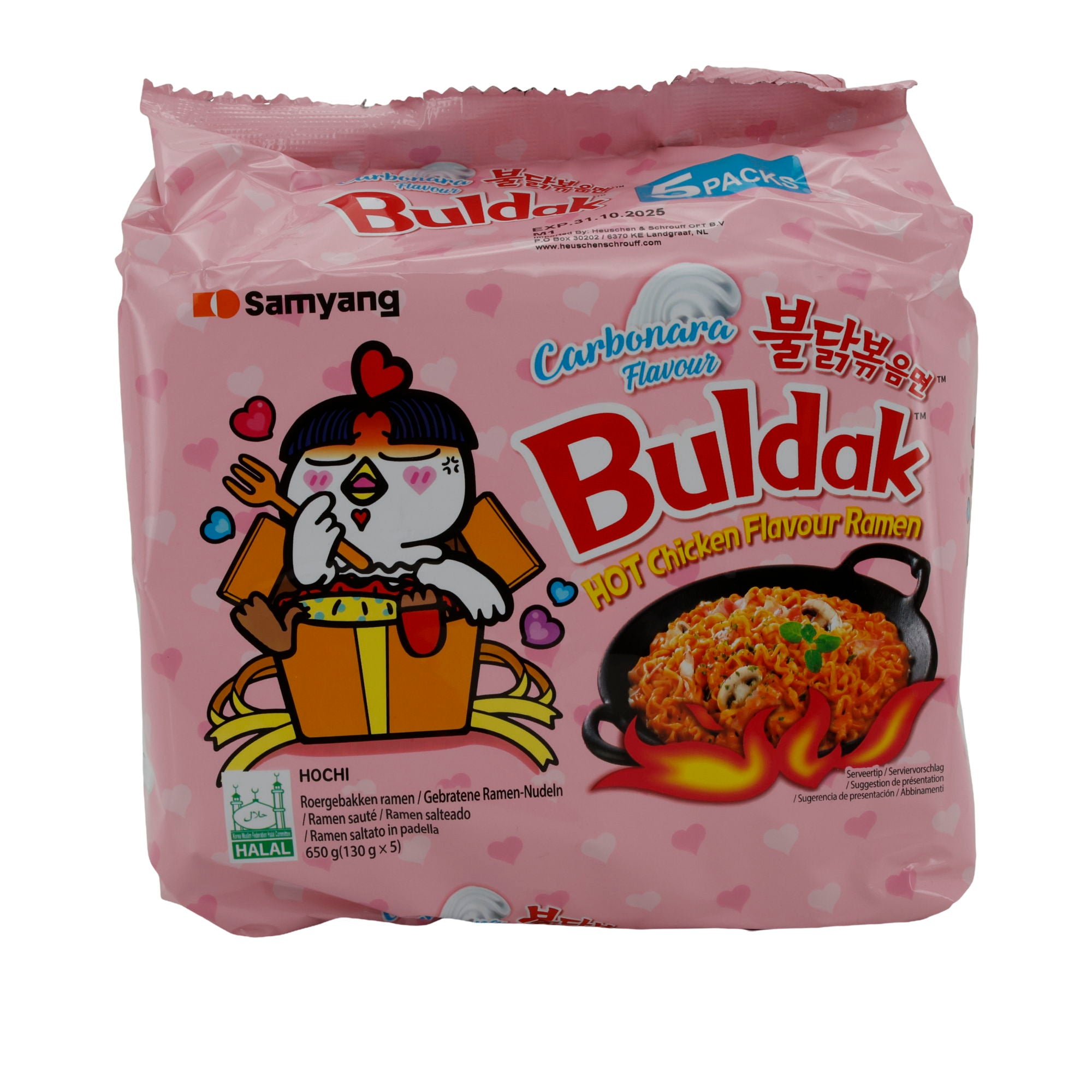 Buldak Carbonara Ramen Samyang | Instant-Nudeln | Scharf mit Carbonara-Geschmack | 5er-Pack