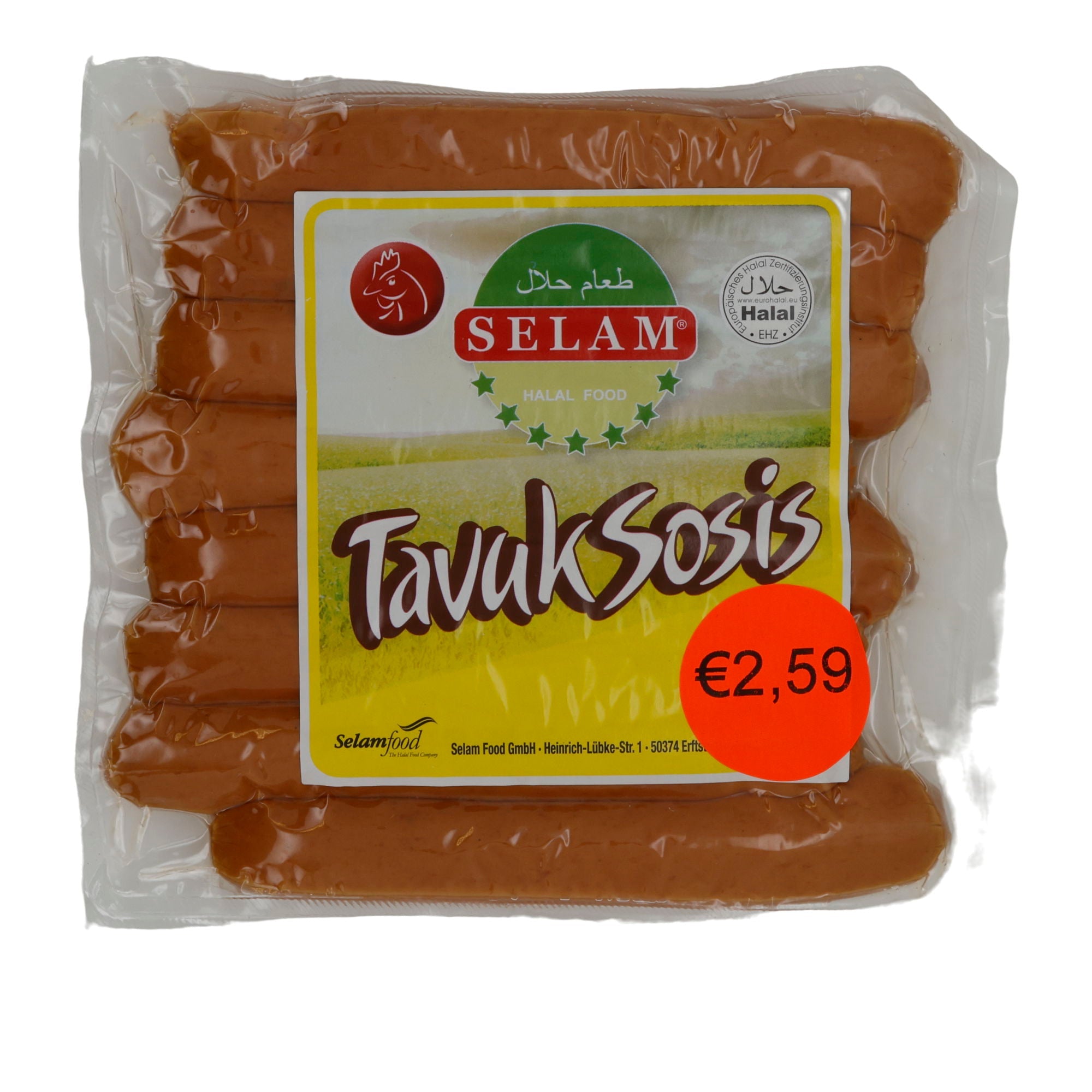 Würstchen Selam | Tavuk Sosis | Halal-Hähnchenwürstchen, vielseitig | 400 g