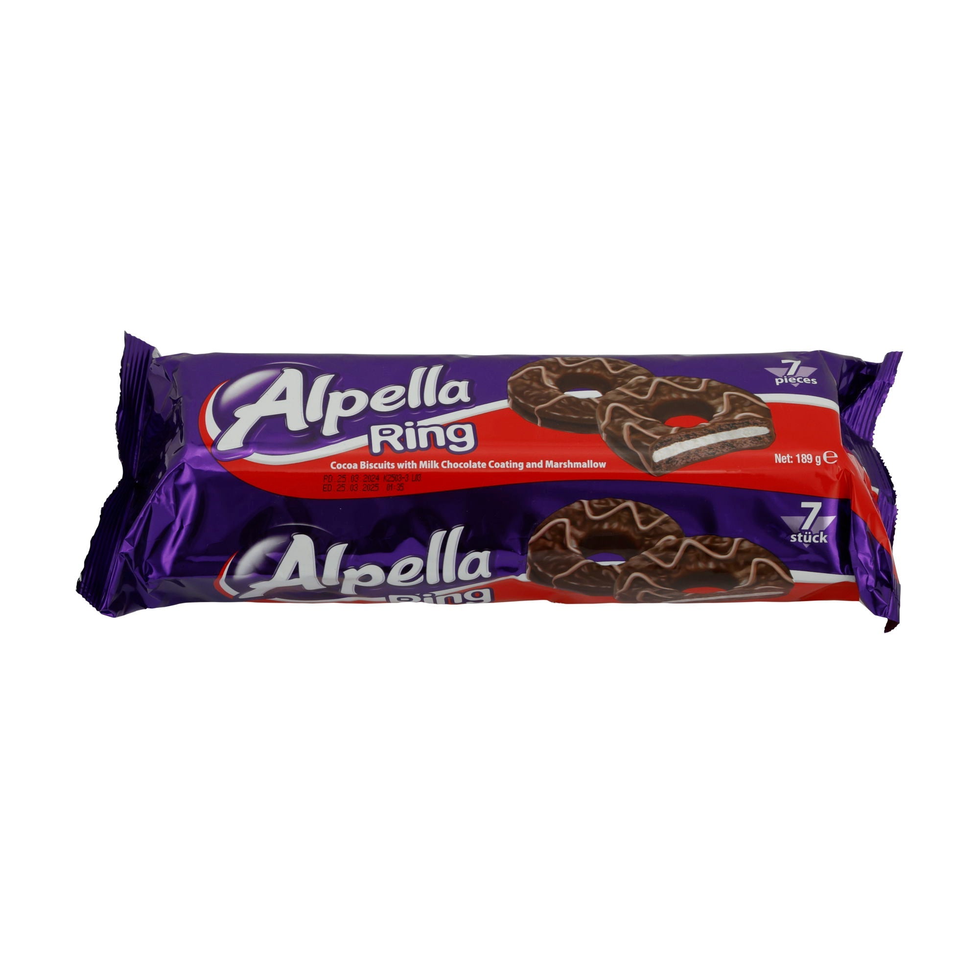 Alpella Ring – Cocoa Cookies with Milk Chocolate & Marshmallow – 7 pieces – 189g