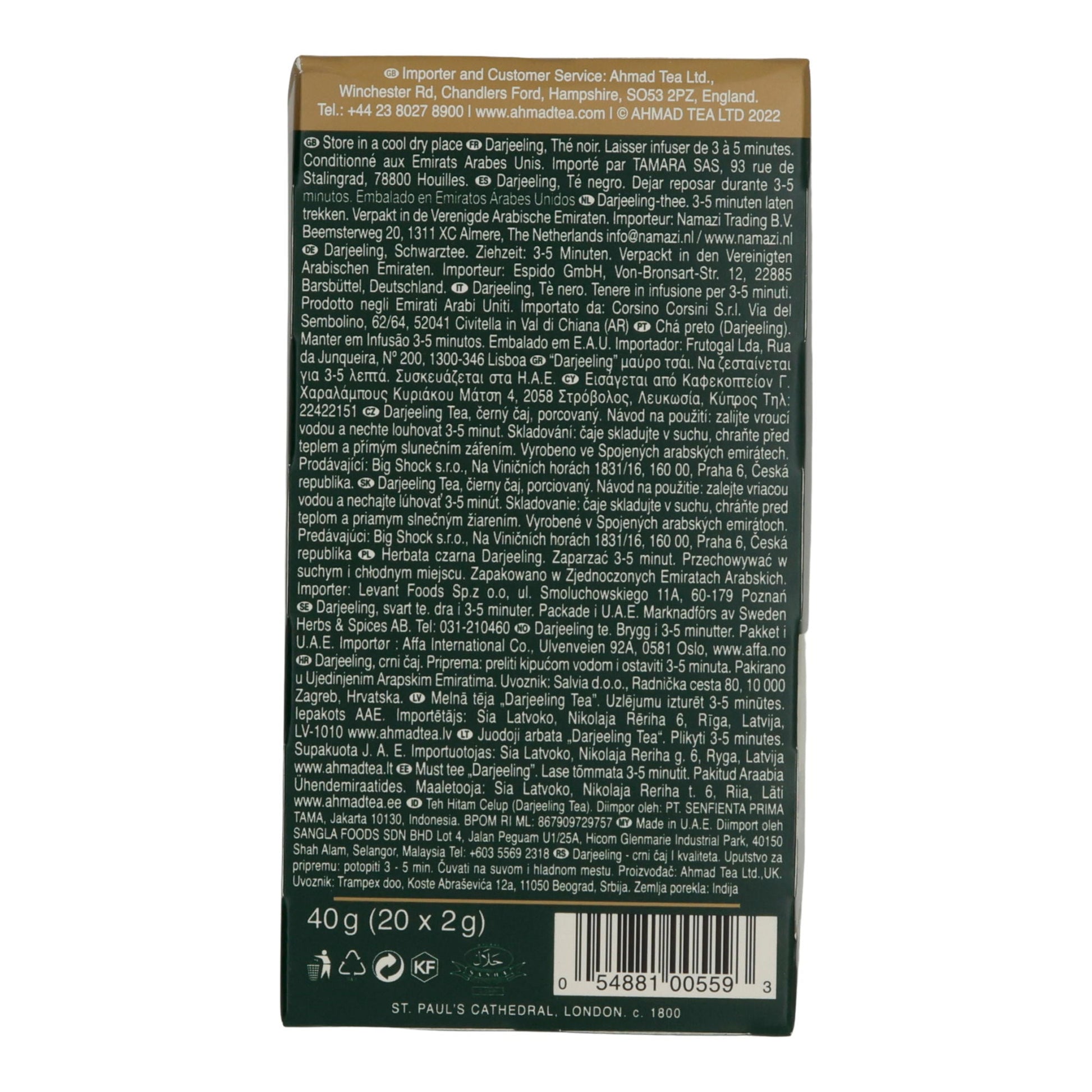 • für Ahmad Tea Ltd., 1 Wood St., London, EC2V 7WS, UK