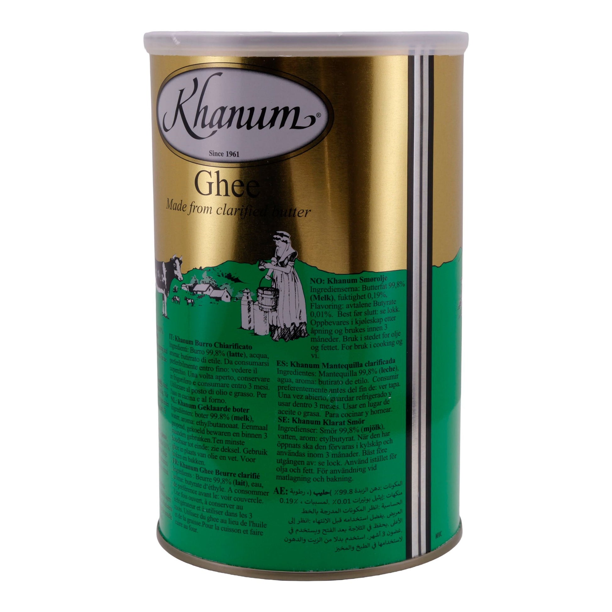 Khanum Ghee ist reines Butterschmalz, das laktosefrei und sehr lange haltbar ist. Es hat einen leicht nussigen, aromatischen Geschmack und enthält nahezu 100% Fett, was es besonders ergiebig macht.