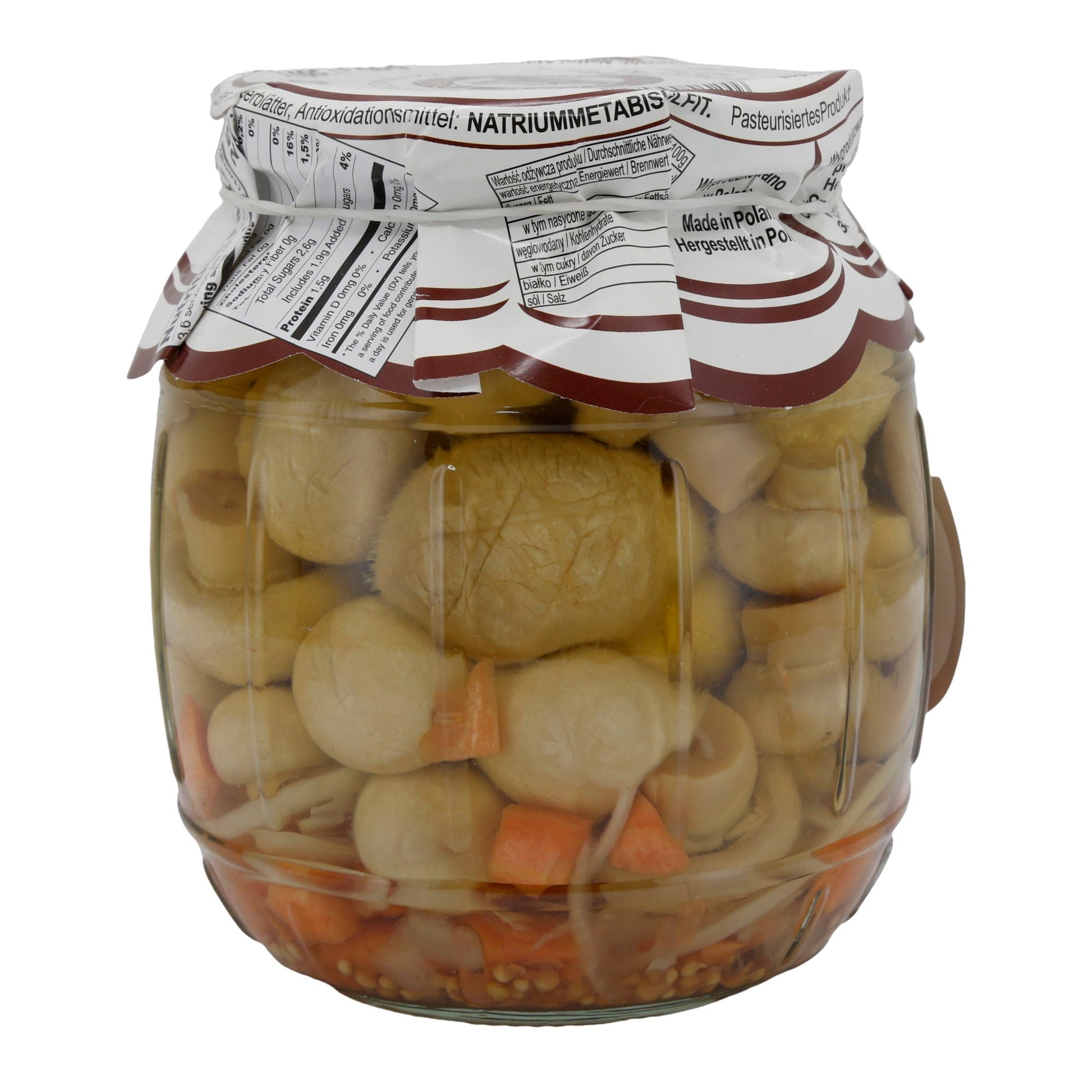 Champignons Pieczarka Konserwowa mit Paprika eingelegt 680 g bietet authentischen Geschmack polnischer Spezialitäten.