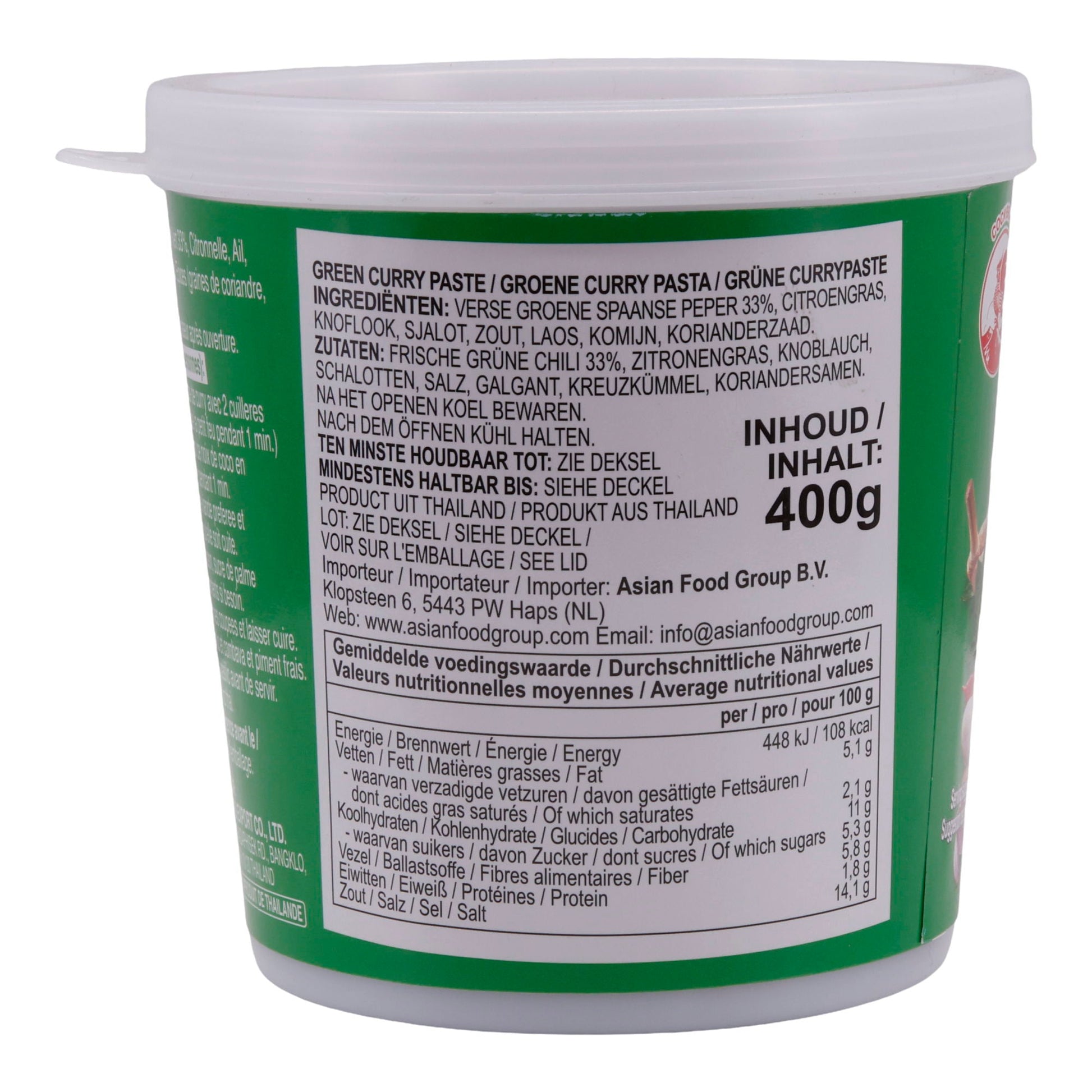 Grüne Curry Paste Cock Brand | Thailändisch | Aromatisch und Vegan | 400 g liefert authentischen Geschmack für Ihre asiatischen Gerichte.