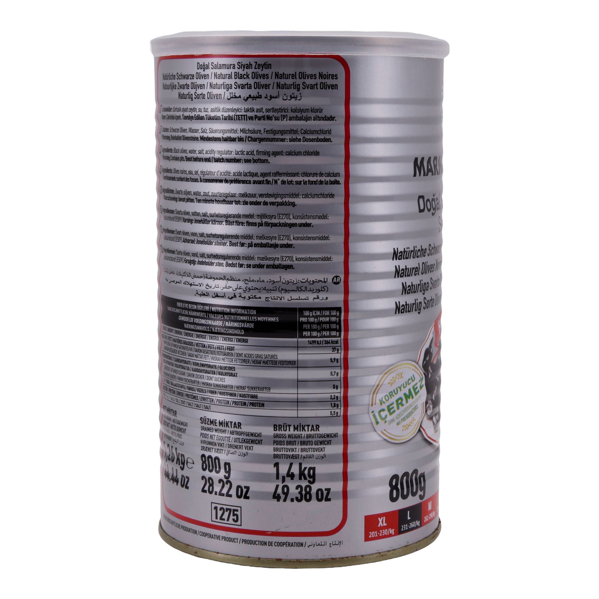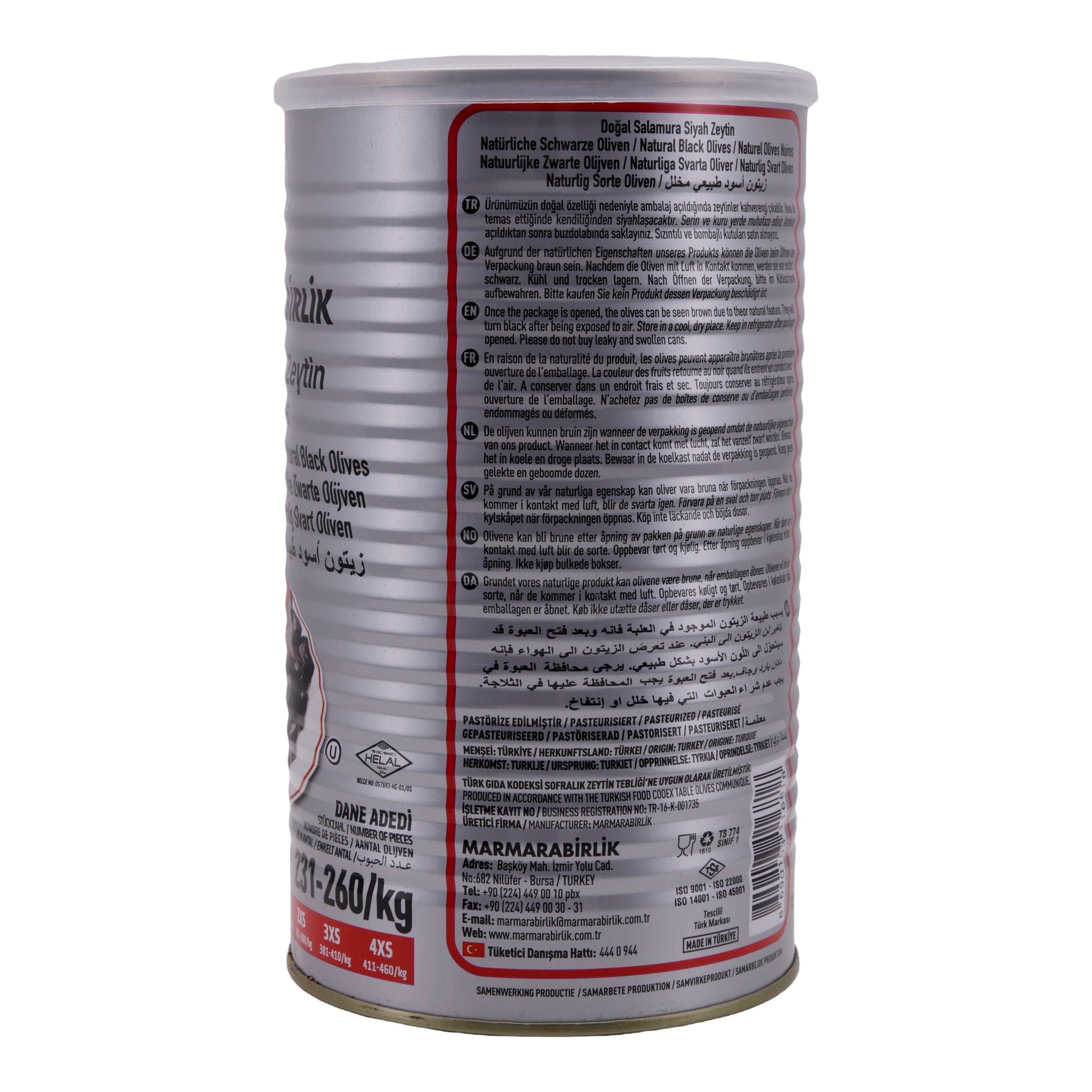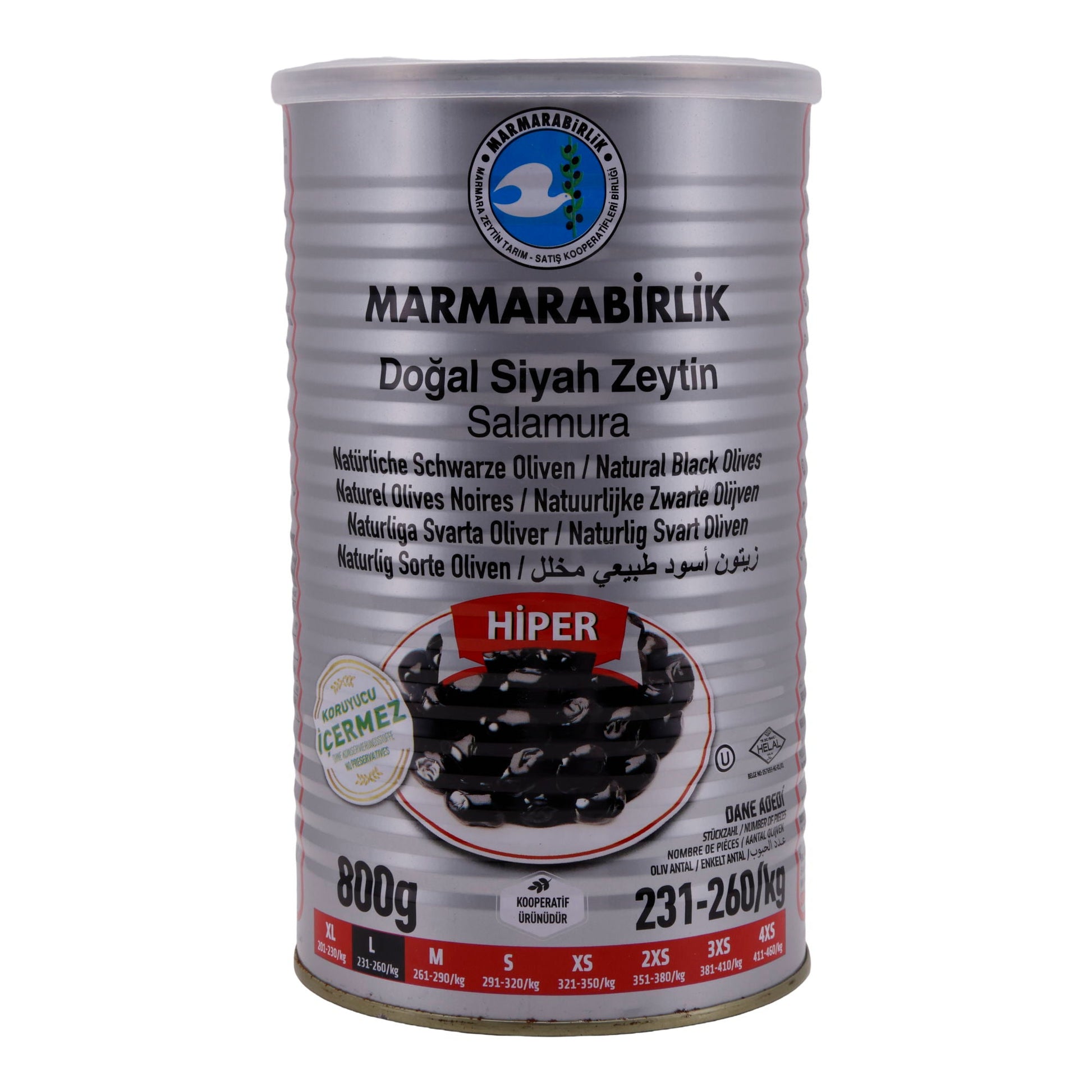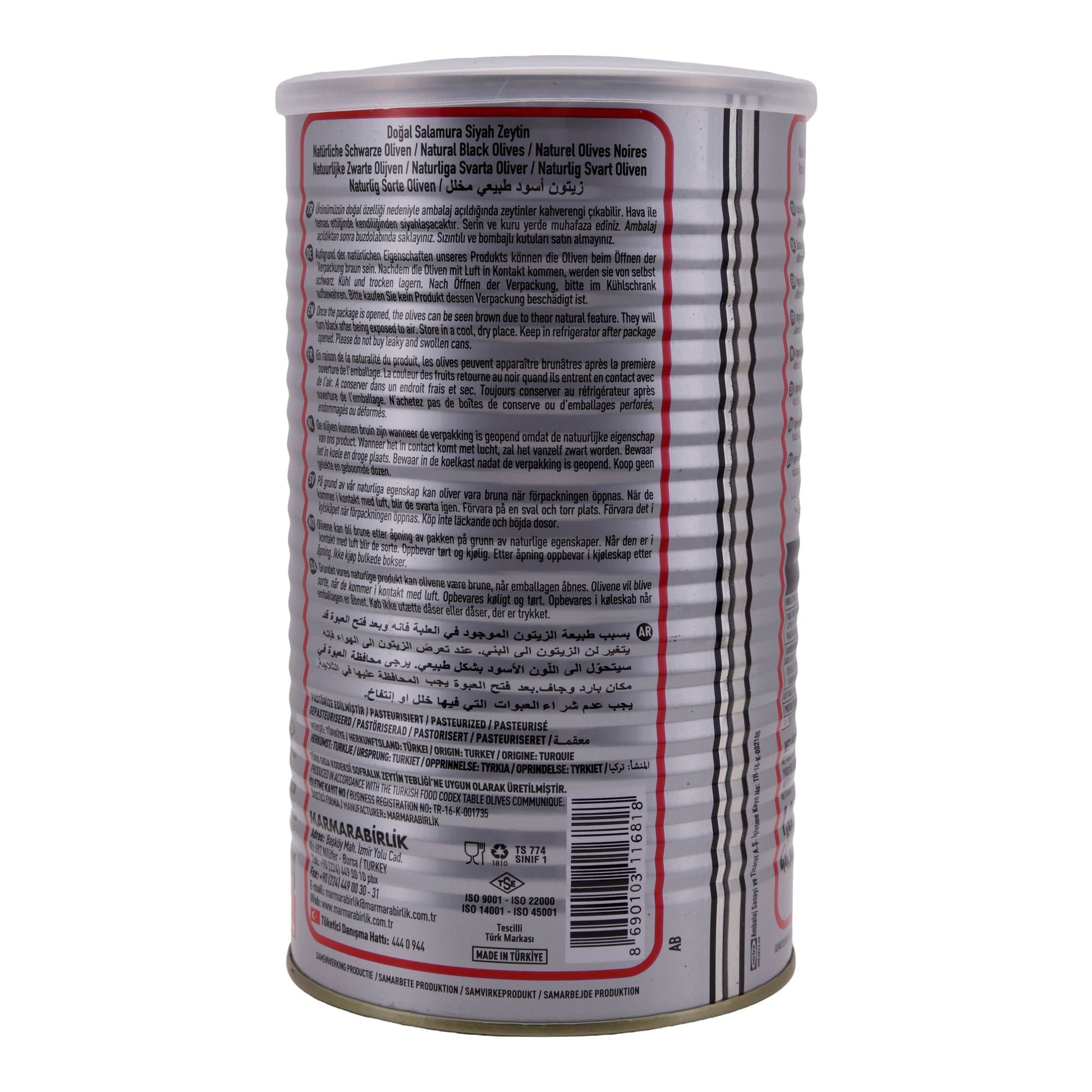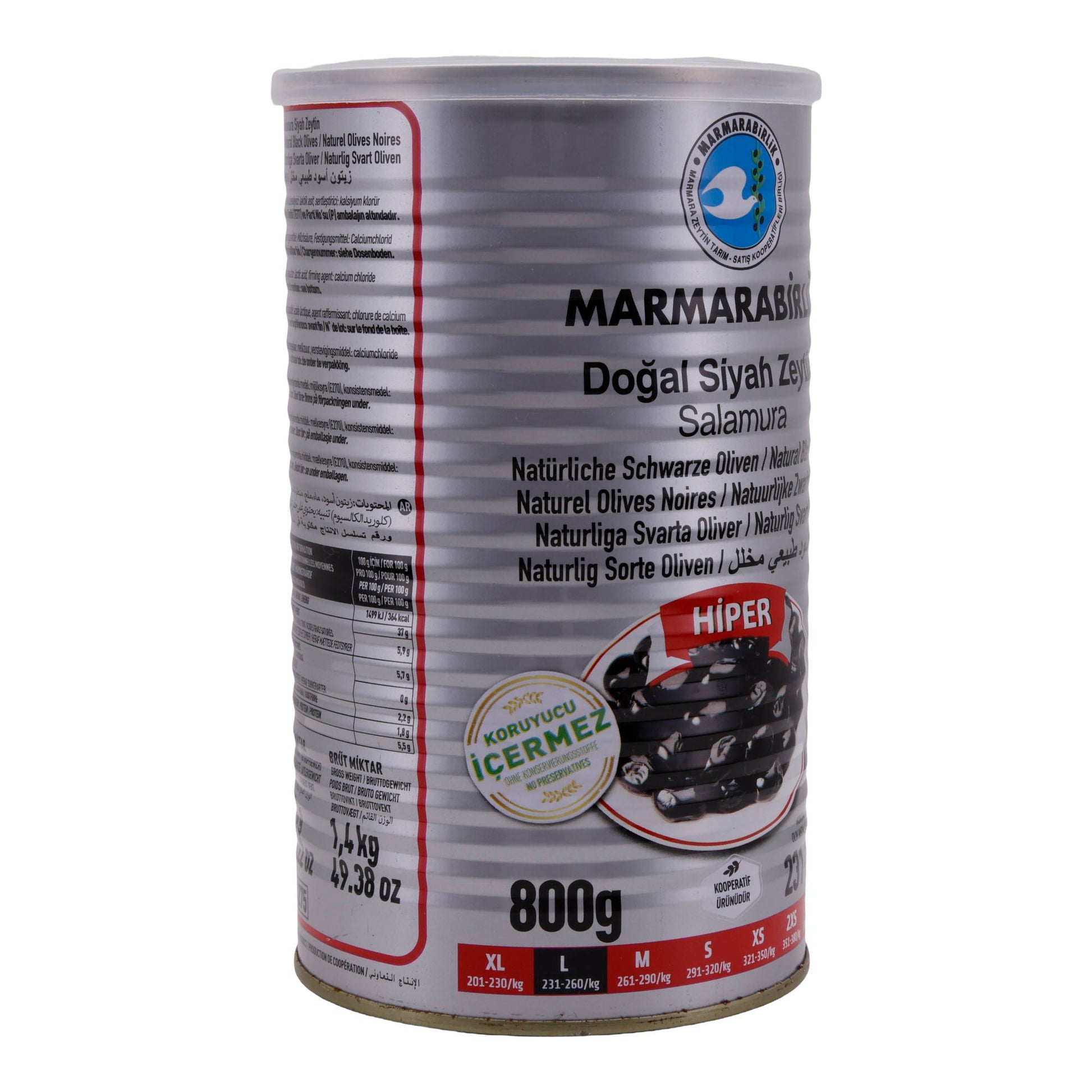Marmarabirlik Schwarze Oliven können direkt aus der 800 g Dose als Snack, Antipasti oder Beilage zu Käseplatten serviert werden. Sie eignen sich hervorragend für mediterrane Salate, auf Pizza, in Nudelgerichten oder Sandwiches.