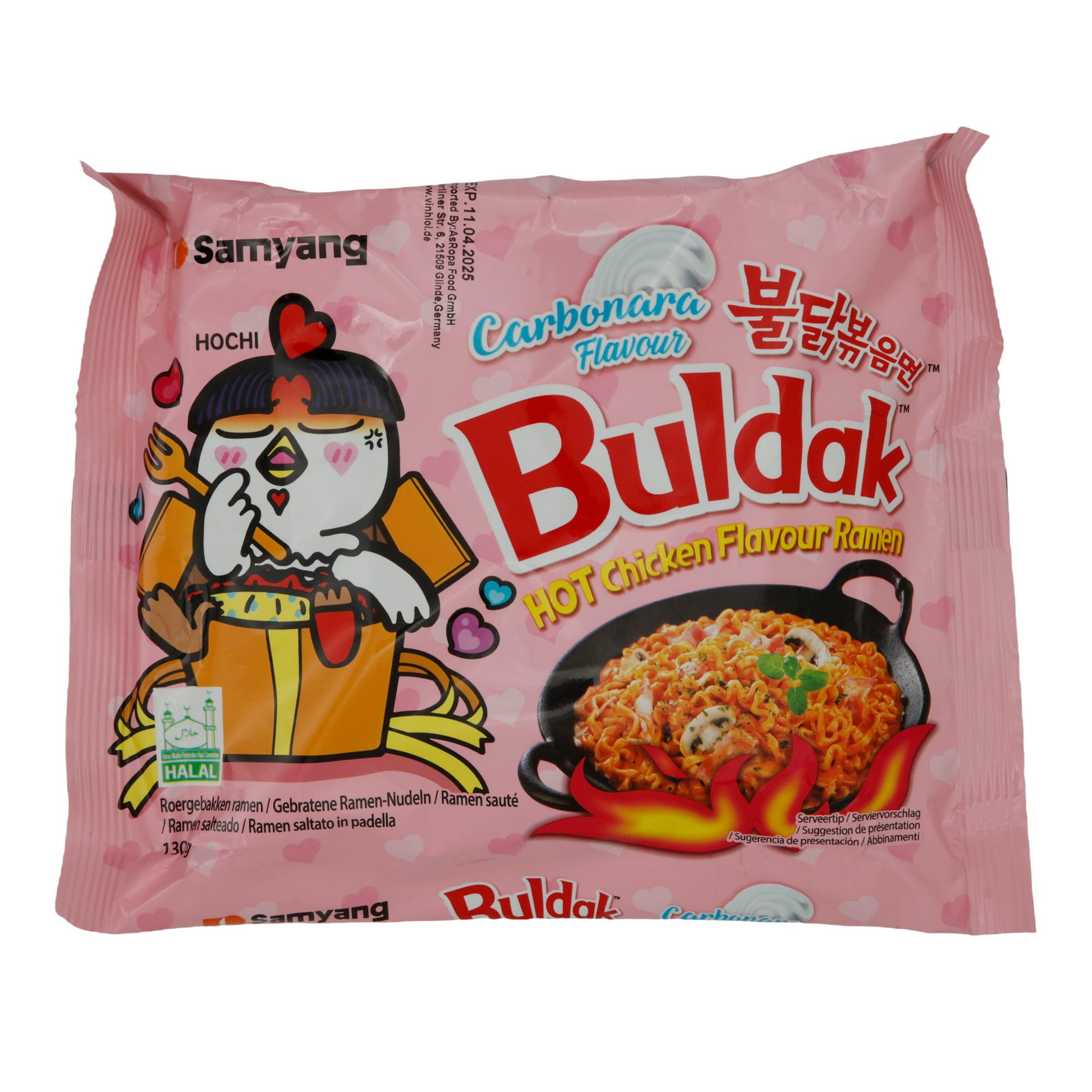 Instant-Nudeln Samyang | Buldak Carbonara Ramen | Scharf, mit Carbonara-Geschmack | 140g liefert intensiven Geschmack und schnelle Zubereitung.