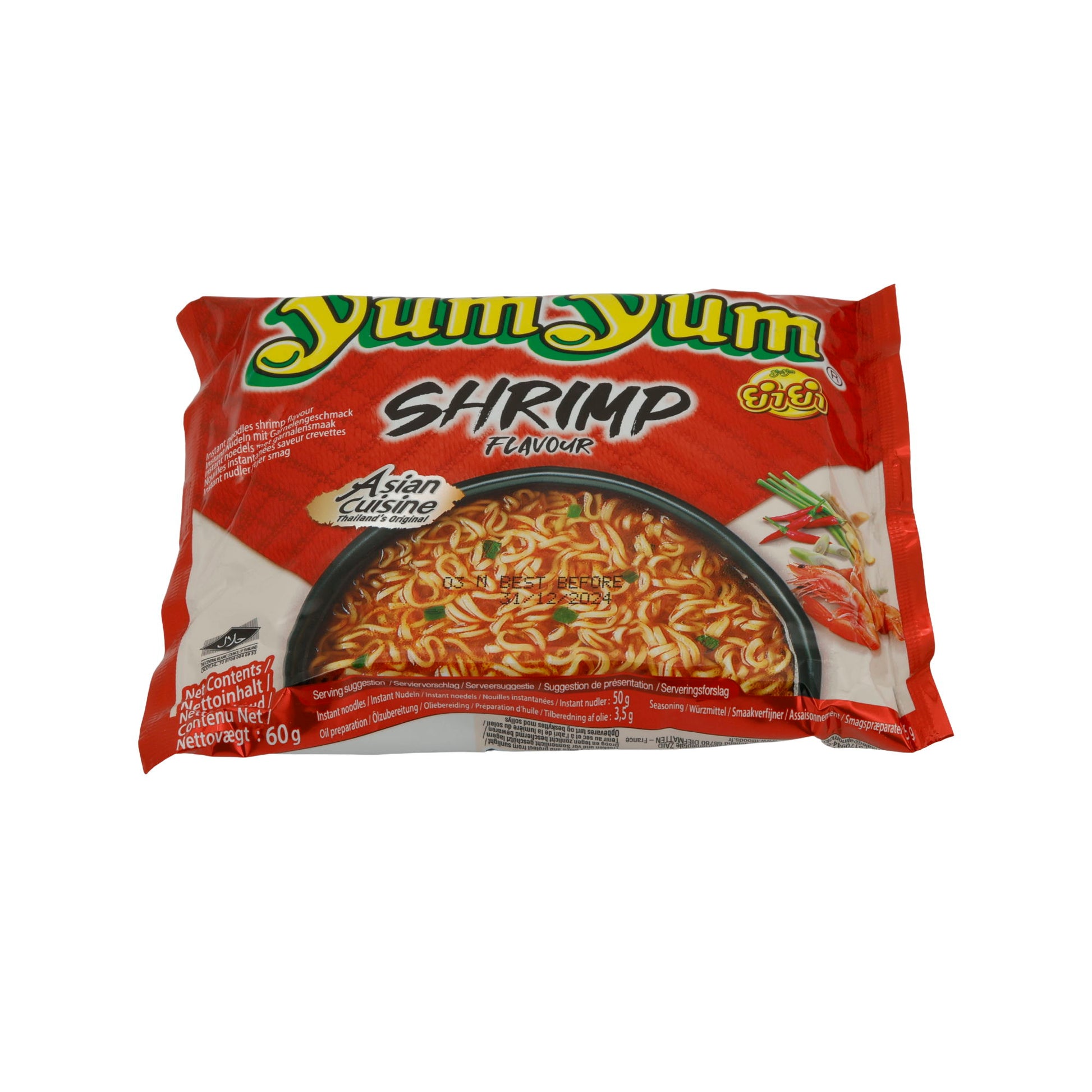 Instant-Nudeln Yum Yum | Shrimp | Pikante Nudelsuppe mit Meeresnote | 60 g bietet authentischen Geschmack der asiatischen Küche.