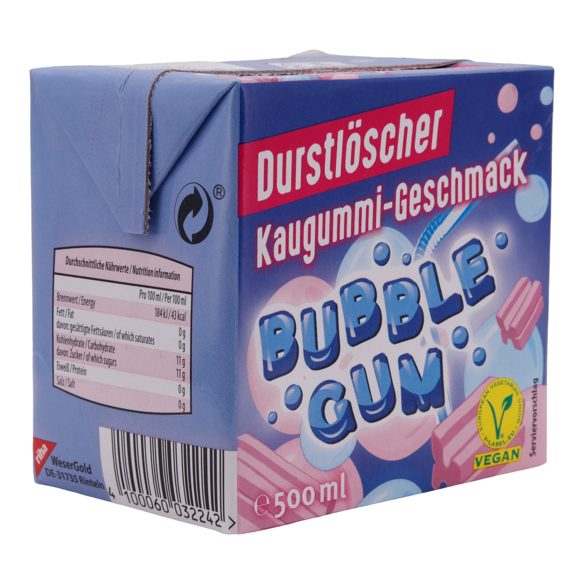 Kaugummi-Geschmack Durstlöscher | Bubble Gum, Vegan | 500 ml bietet ein einzigartiges Geschmackserlebnis, das an süßen Kaugummi erinnert und jeden Durst löscht.