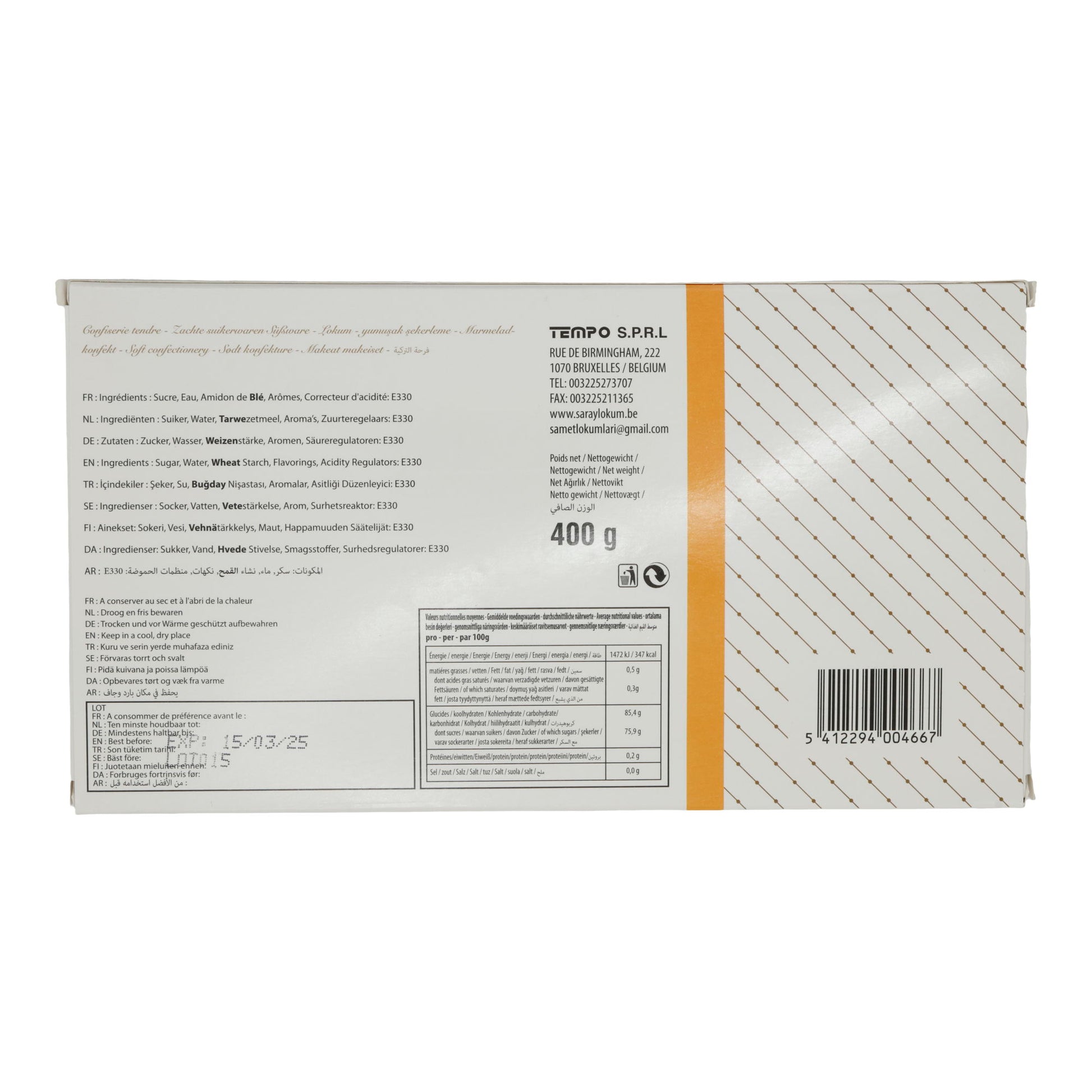 Lokum Saray Turkish Delight zeichnet sich durch seine weiche, elastische Konsistenz und die Verwendung natürlicher Aromen wie Rosenwasser und Zitronenextrakt aus. Es enthält keine künstlichen Zusätze und ist mit Puderzucker oder Kokosflocken bestäubt, um ein angenehmes Mundgefühl zu gewährleisten.