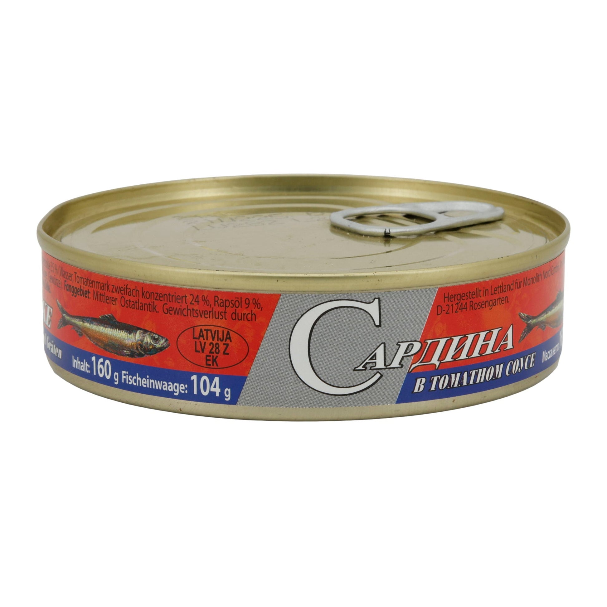 Sardinenstücke in Tomatensoße mit Haut & Gräten bieten authentischen Geschmack und sind ein Muss für Liebhaber russischer Spezialitäten.