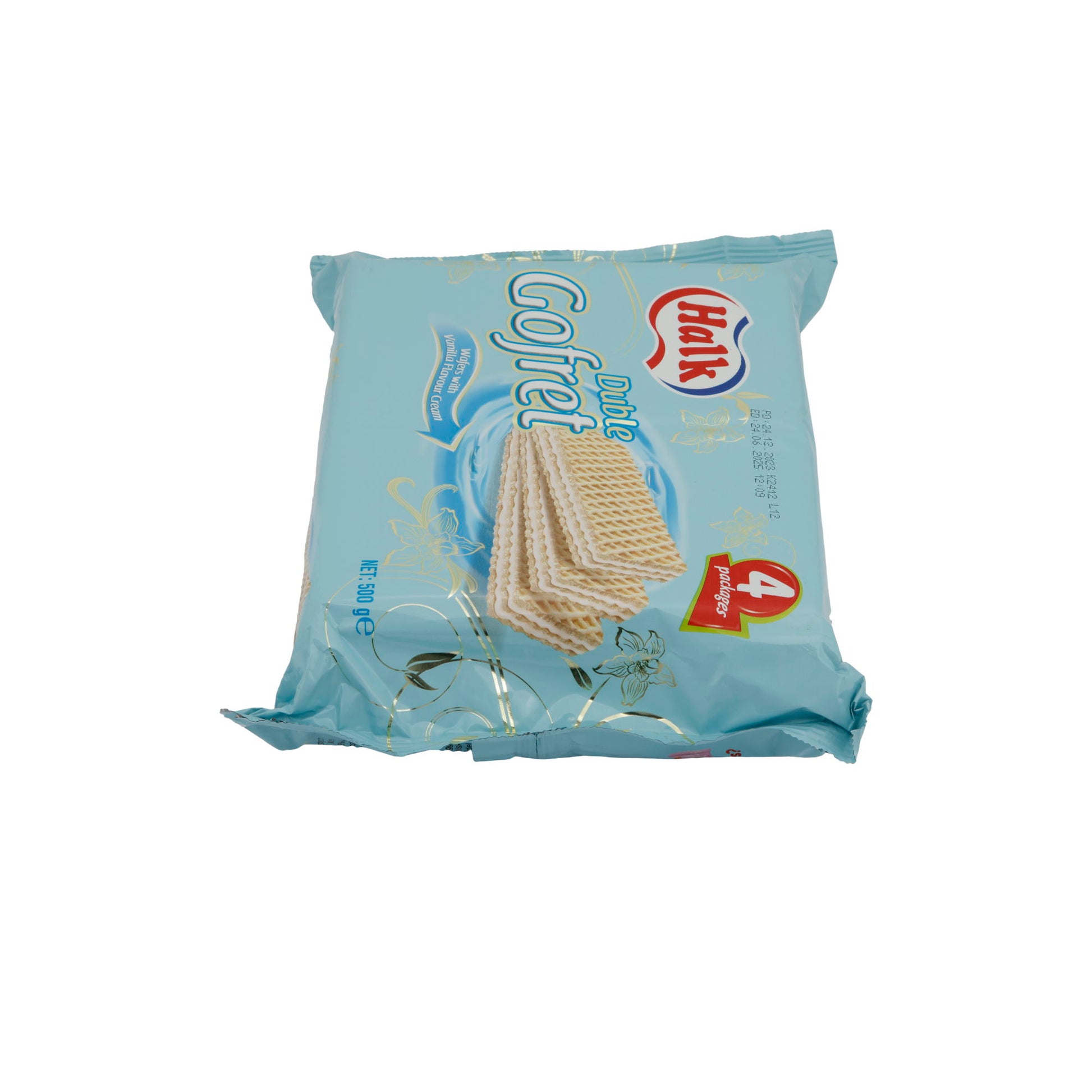 Waffeln Halk Duble Gofret | Gebäck | mit Vanillecreme-Füllung im 4er Pack | 500 g bietet Ihnen den ultimativen Genuss traditioneller türkischer Spezialitäten.