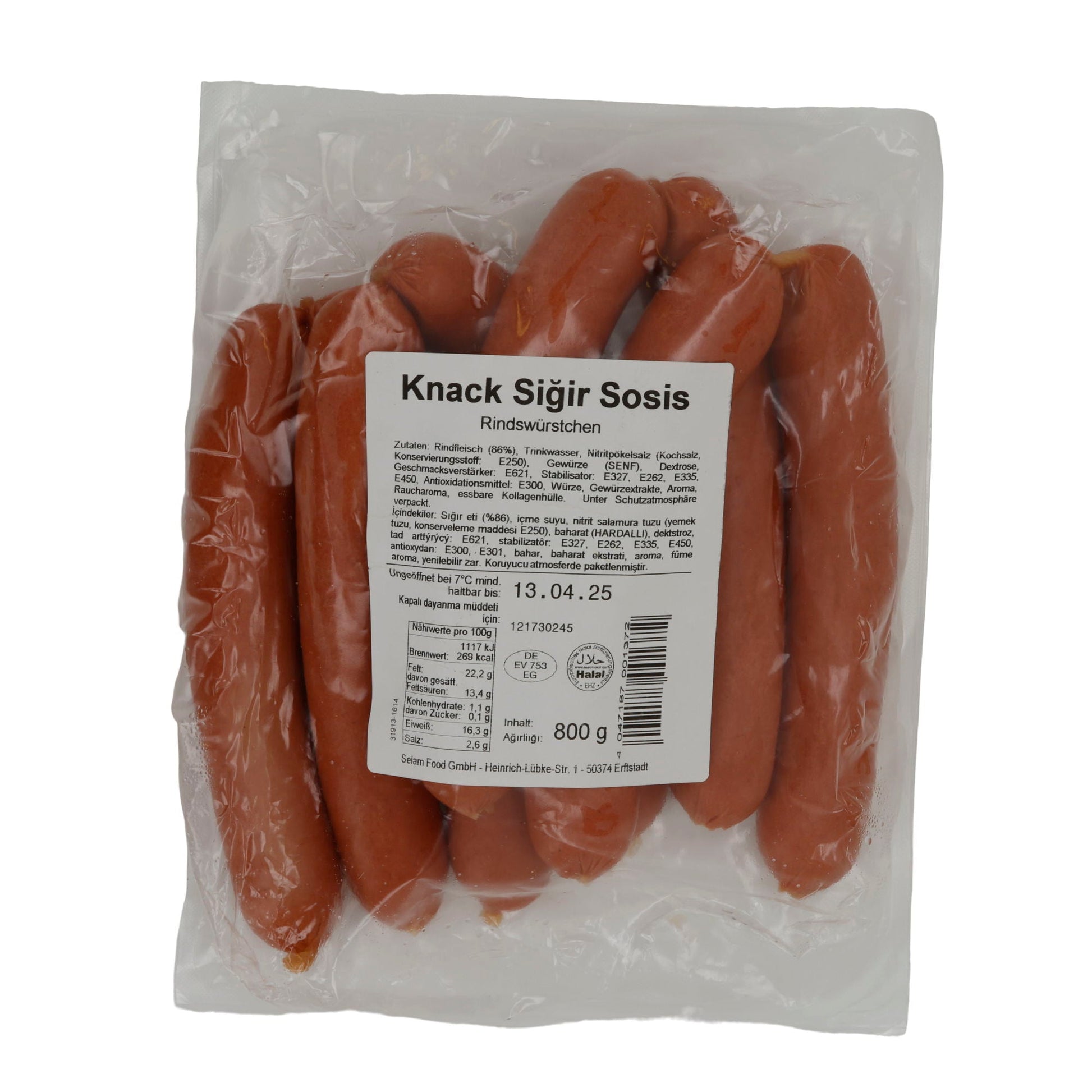 Würstchen Selam | Sığır Knack Sosis | Halal-Rindswürstchen, würzig | 800 g bietet authentischen Geschmack und Qualität.