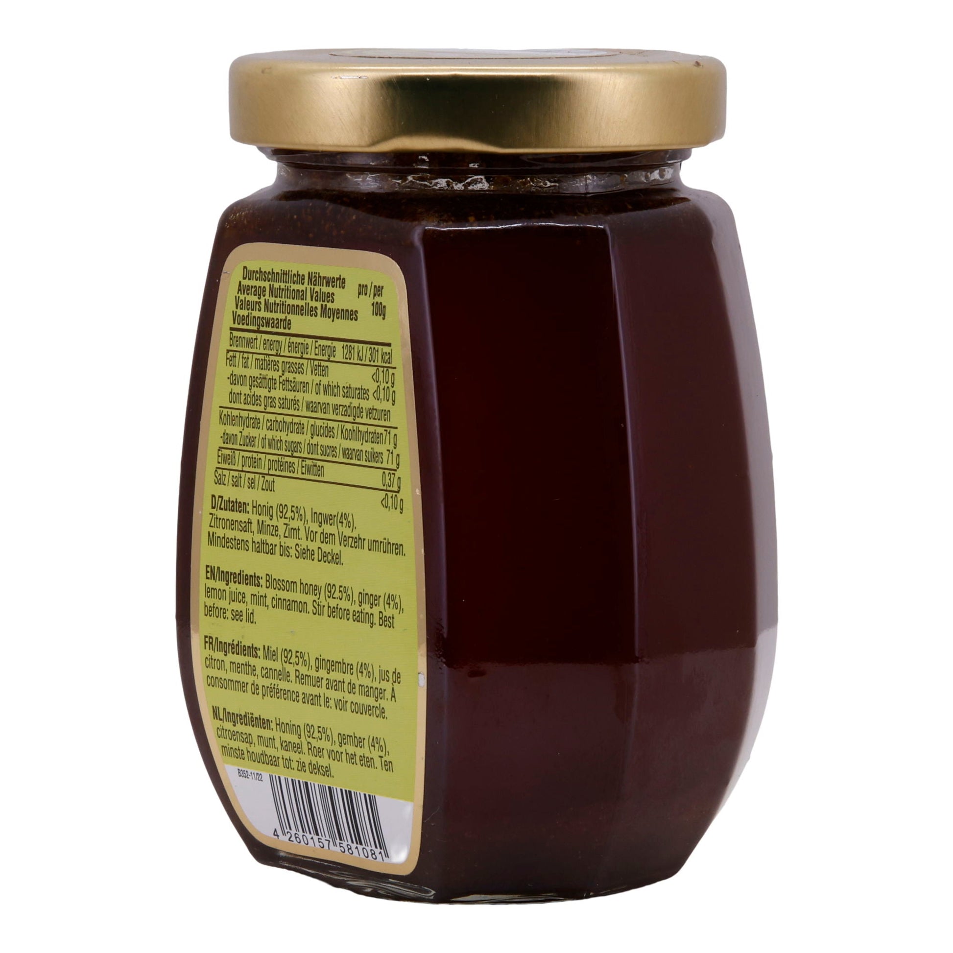 - Blütenhonig (92,5%) Ingwer (4%) Zitronensaft Minze Zimt