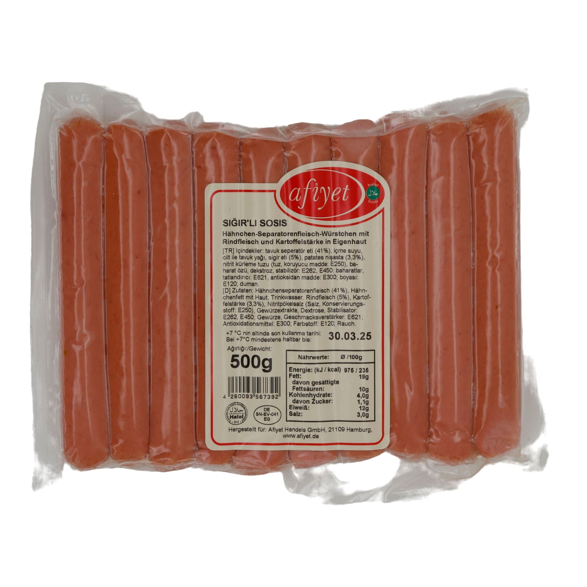 Würstchen Afiyet Sığır’lı Sosis | Hähnchen-Rind-Würstchen | Für Grill & Pfanne | 500 g