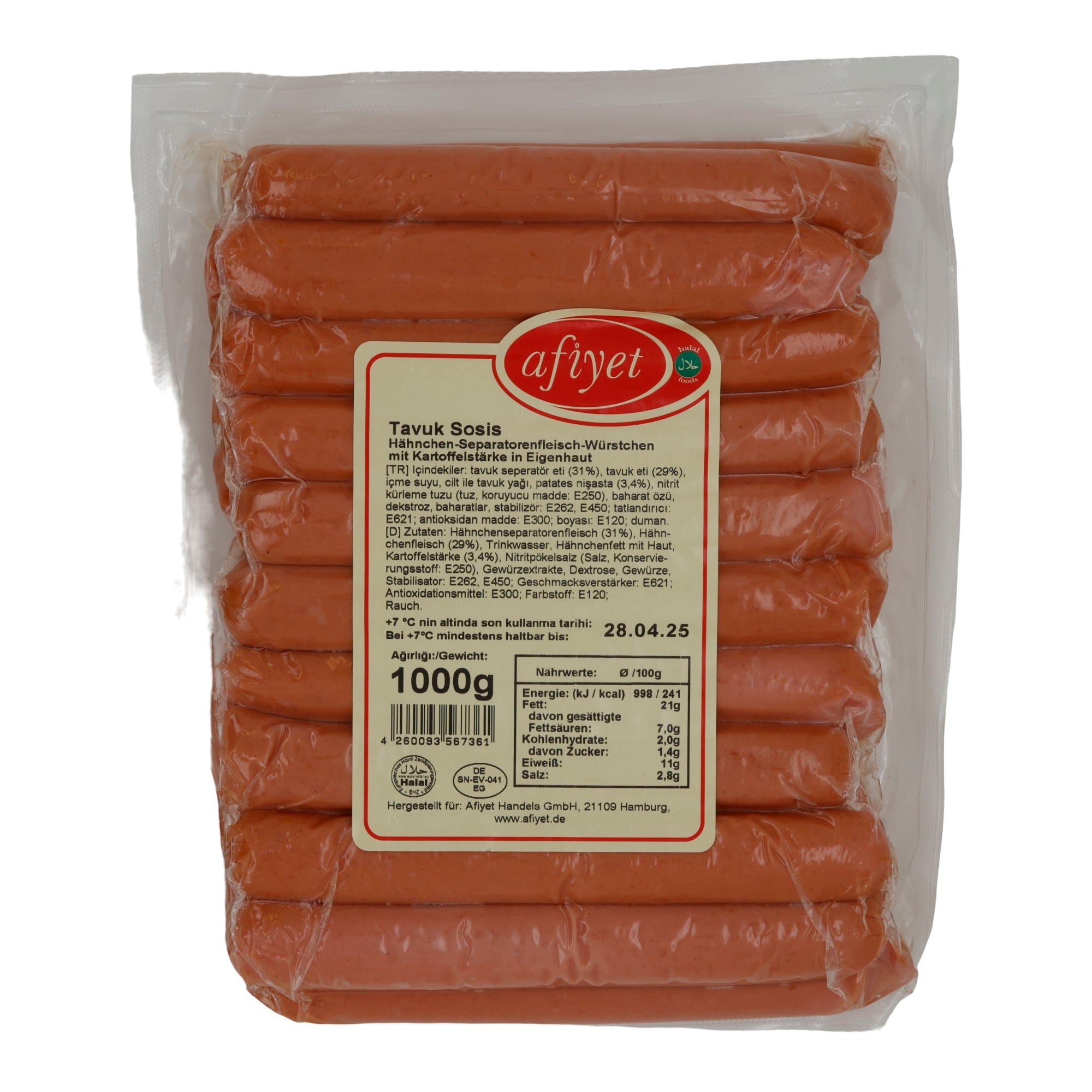 Würstchen Afiyet Tavuk Sosis | Würzige Hähnchen-Würstchen | Für Grill & Pfanne | 1 kg