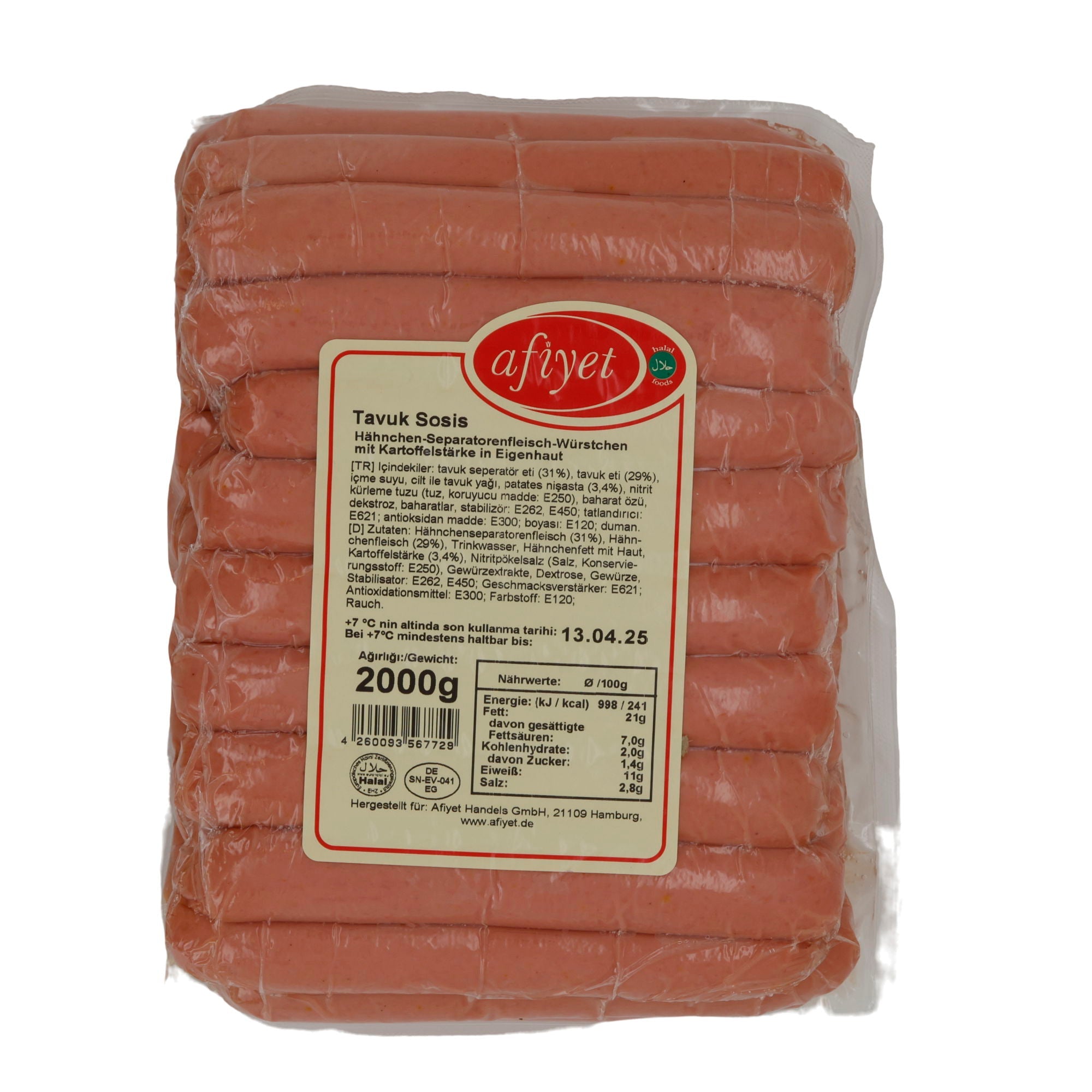 Würstchen Afiyet Tavuk Sosis | Würzig | Hähnchen-Würstchen für Grill & Pfanne | 2 kg
