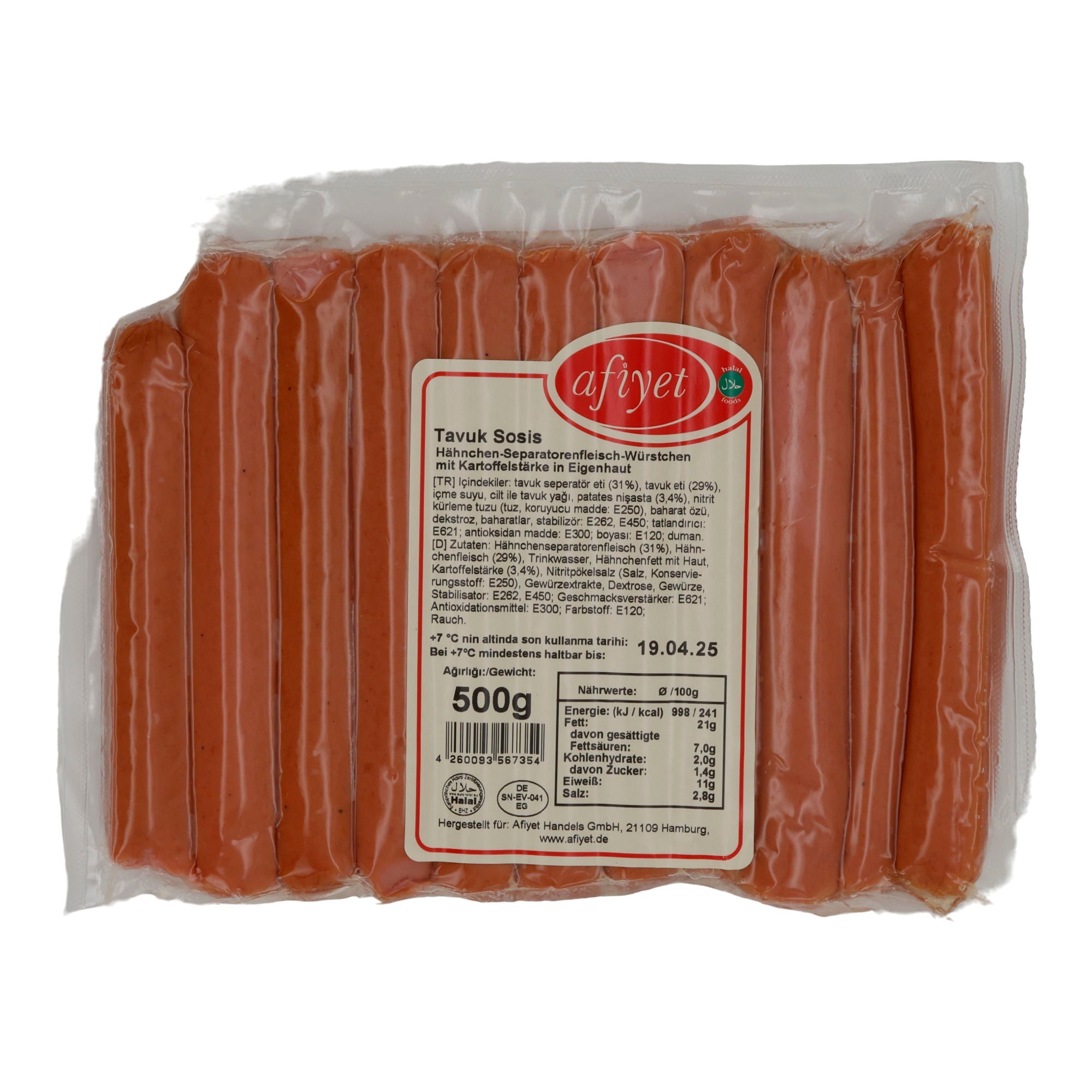 Würstchen Afiyet Tavuk Sosis | Würzig | Hähnchen-Würstchen für Grill & Pfanne | 500 g