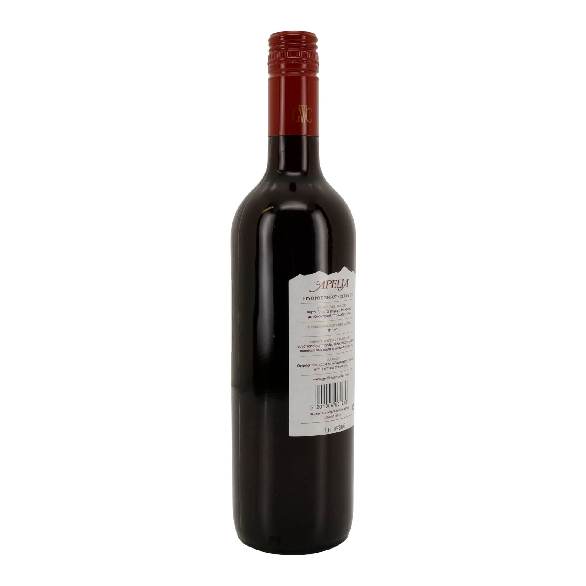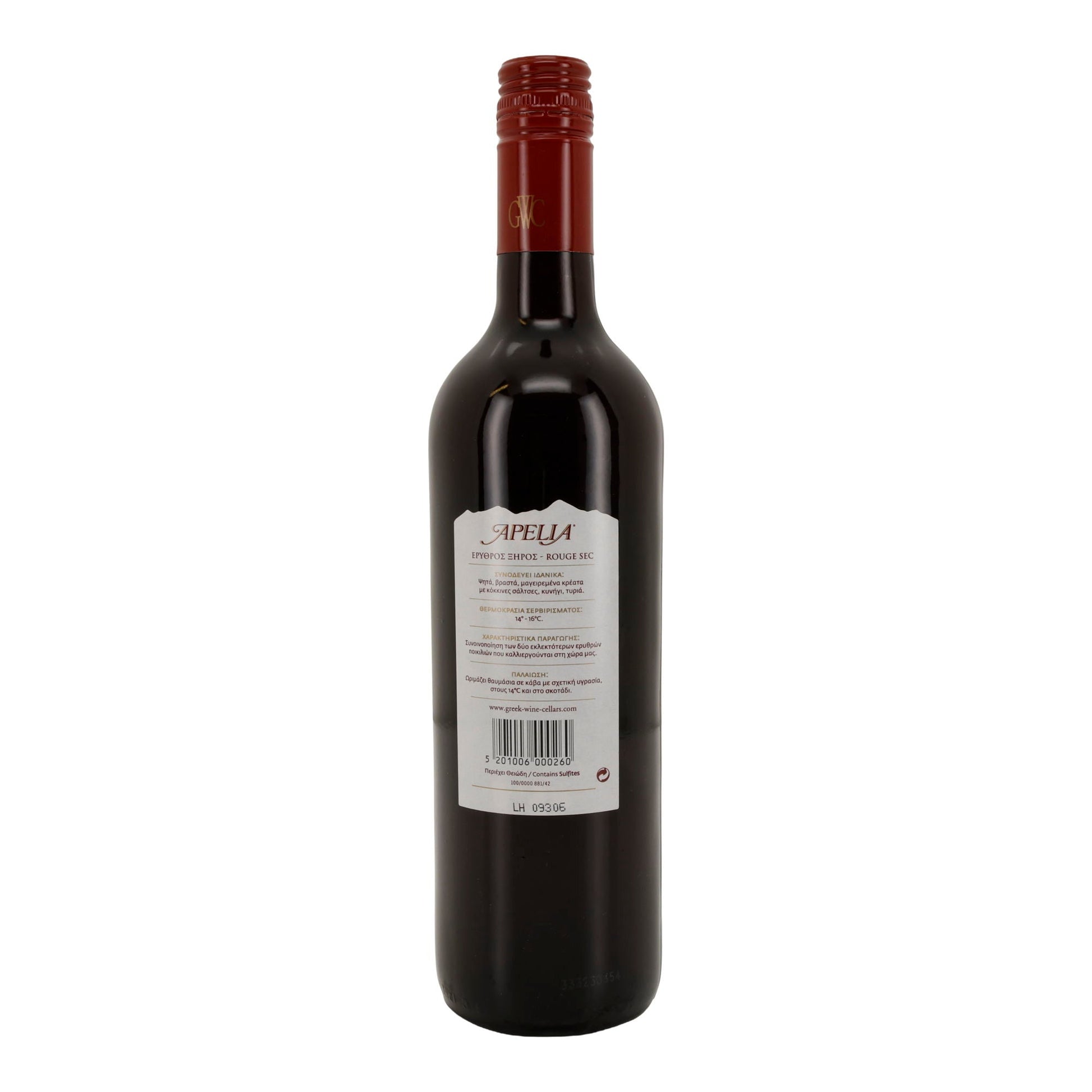 Apelia Rotwein trocken ist ein griechischer Qualitätswein aus der Region Peloponnes, hergestellt aus den Rebsorten Agiorgitiko und Syrah. Er zeichnet sich durch einen vollmundigen, samtigen Geschmack mit Aromen von roten Früchten und einer leichten Gewürznote aus.