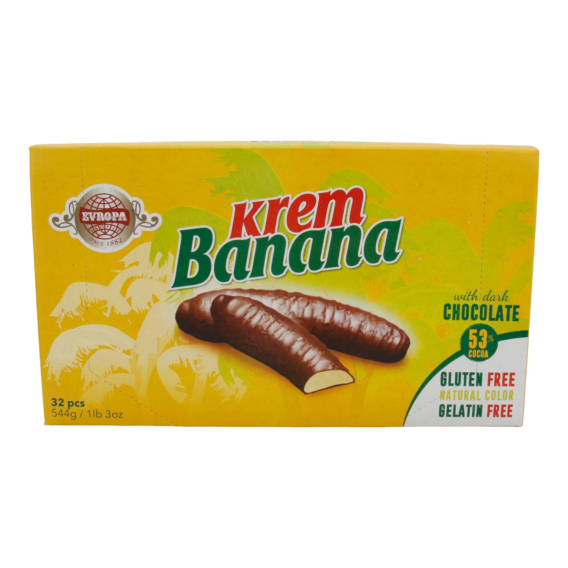 Crème de banane Evropa Krem Banana | Confiserie | au goût de banane et glaçage au chocolat | 32 pièces, 544g