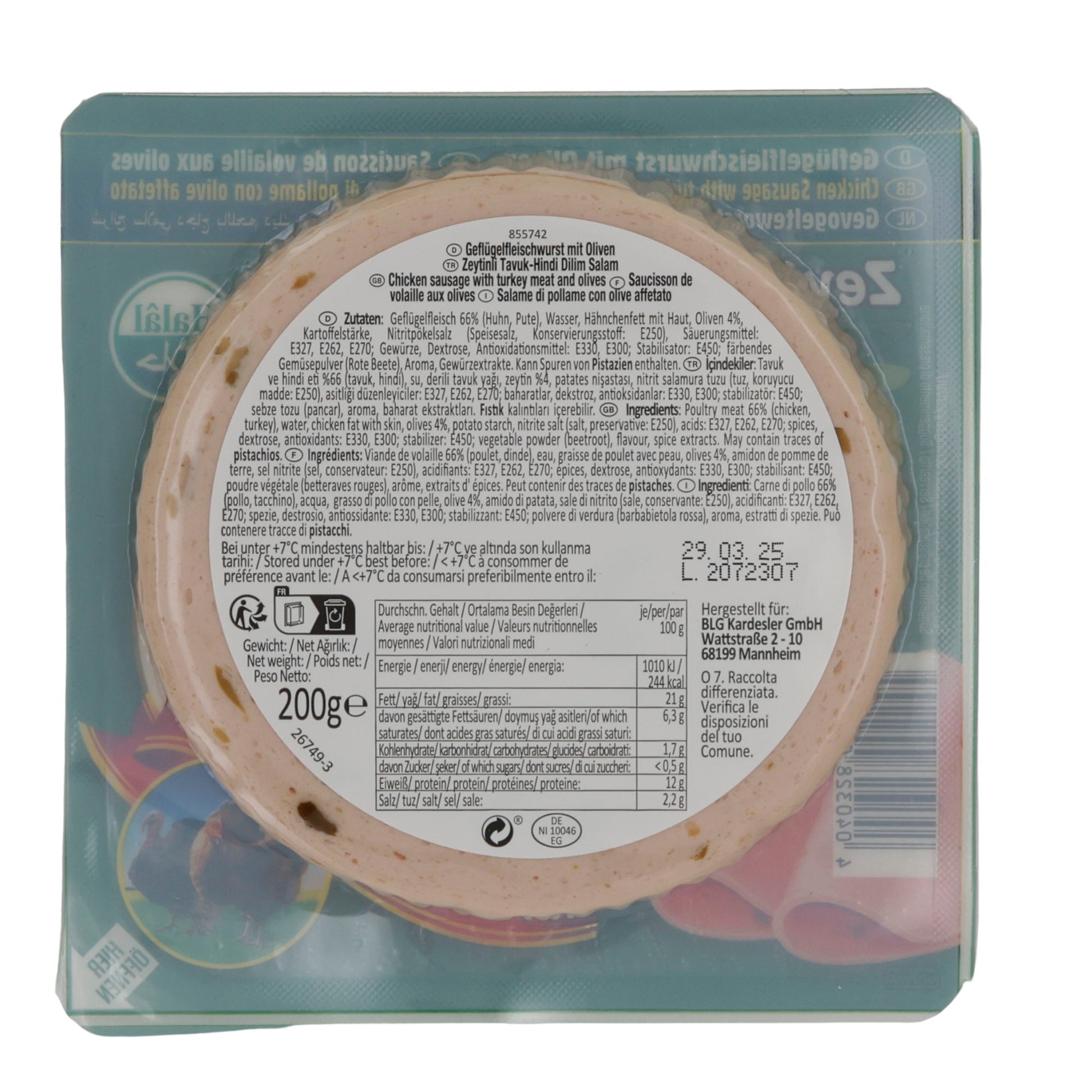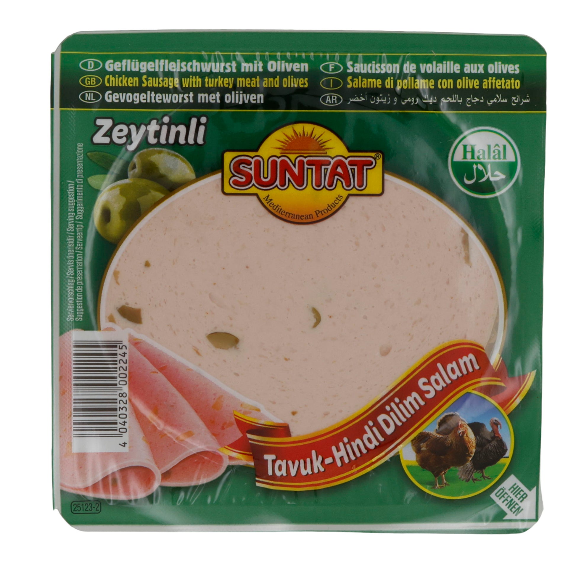 Charcuterie de volaille Suntat | Salami tranché poulet-dinde Zeytinli | Avec olives, Halal | 200 g