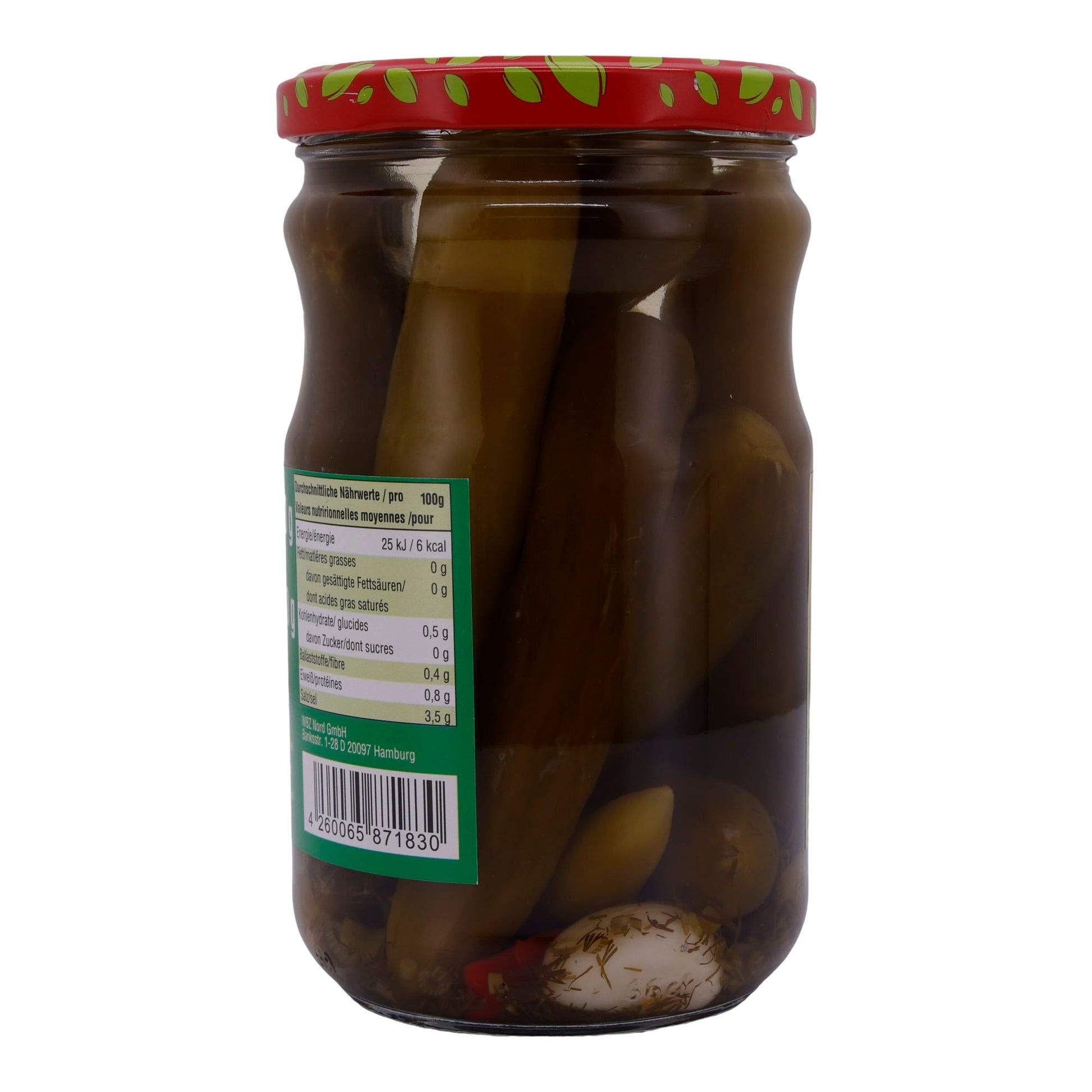 Die Gurken zeichnen sich durch ihre knackige Textur und das würzige Aroma aus, das durch die traditionelle Einlegeart mit Knoblauch, Dill und Gewürzen entsteht. Sie sind kalorienarm und enthalten keine bekannten Allergene.