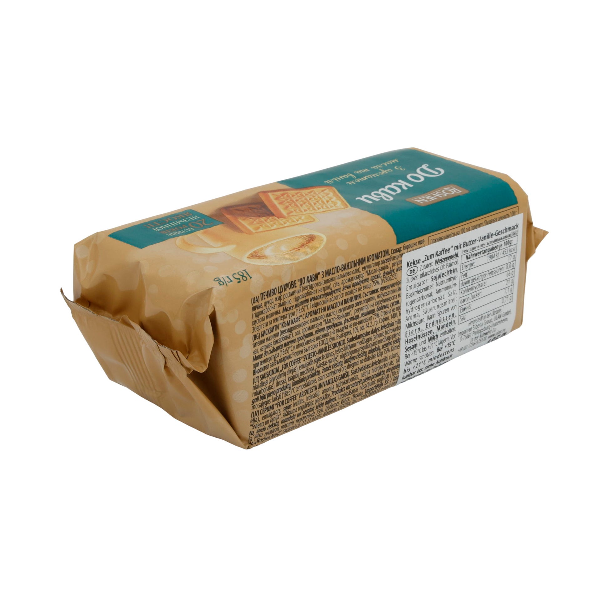 Roshen 'Do Kavy' Kekse sind fertig gebacken und sofort verzehrfertig. Sie eignen sich ideal als Begleitung zu Kaffee, Tee oder Kakao. Auch als Snack für unterwegs oder als süße Komponente auf einer Gebäckplatte sind sie beliebt.