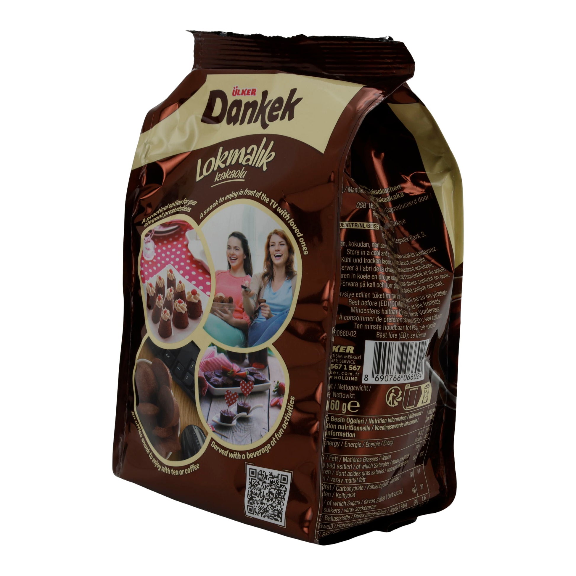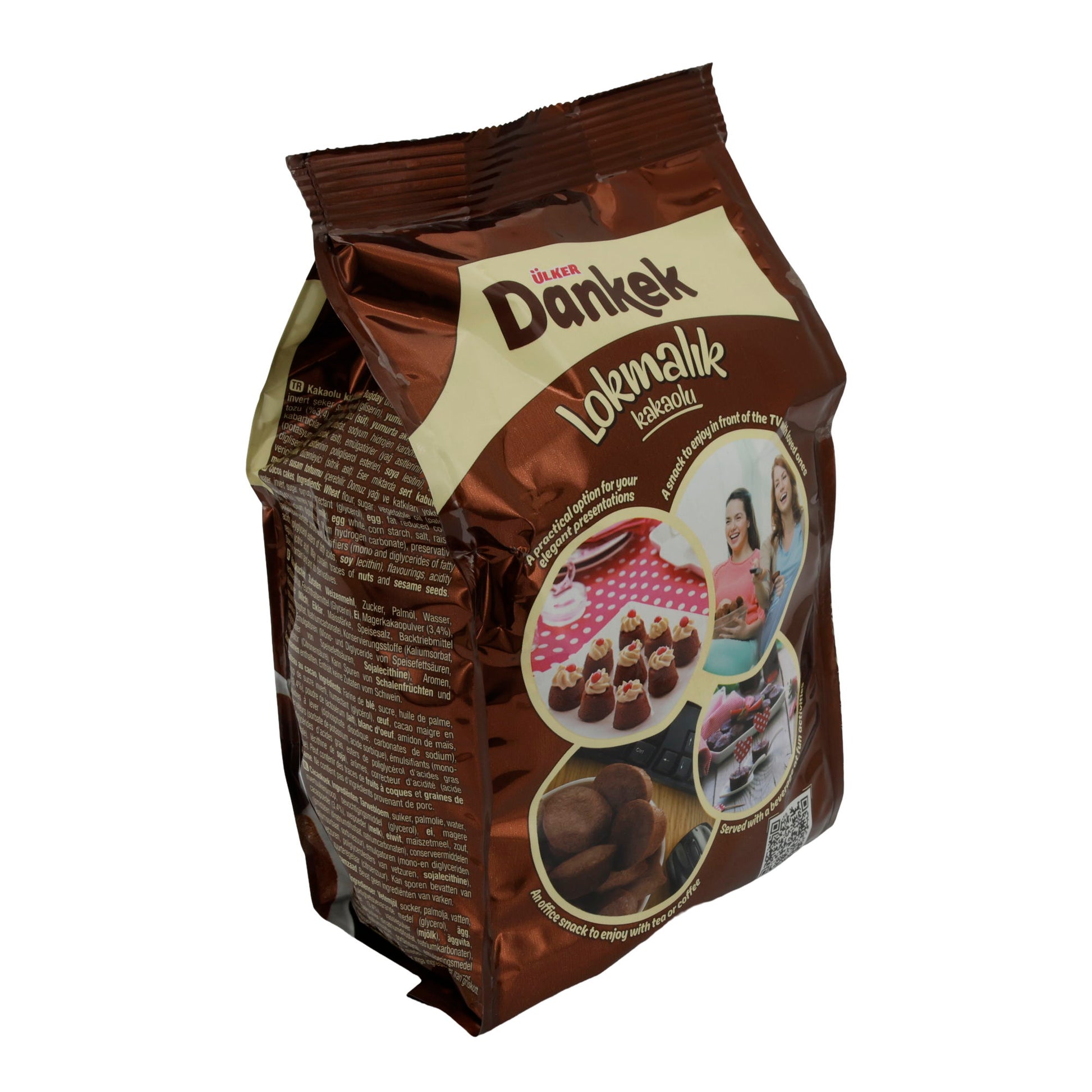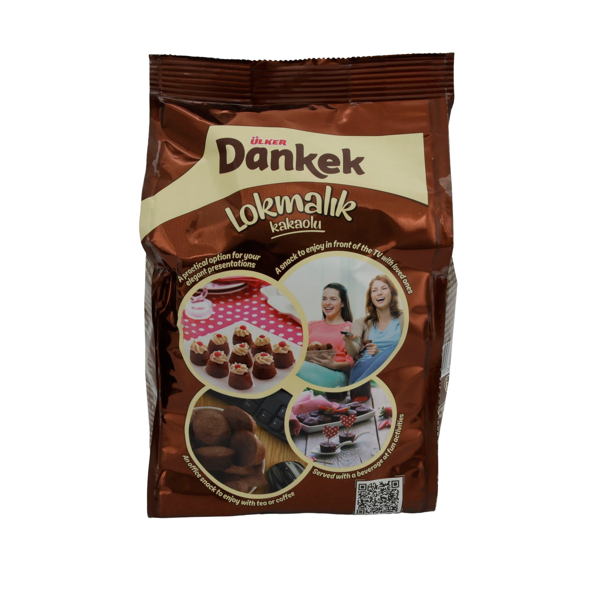 Ülker Dankek Lokmalık Kakaolu sind verzehrfertige Schokoladenkekse, die ideal als Snack zu Tee oder Kaffee geeignet sind. Sie können auch als Dessertbeilage oder zum Dekorieren von Desserttellern verwendet werden.