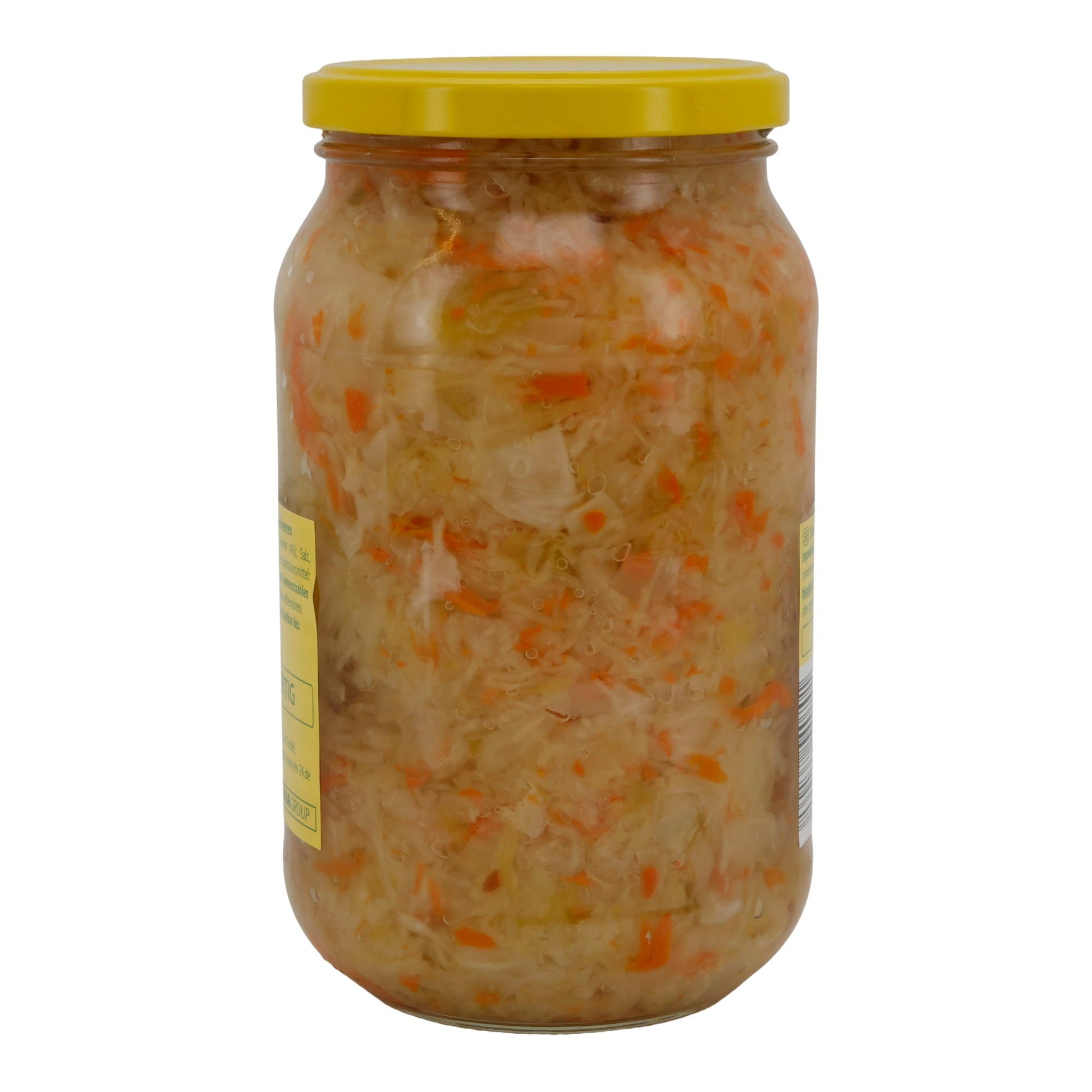 Lagern Sie das Sauerkraut an einem kühlen, trockenen Ort. Nach dem Öffnen sollte es im Kühlschrank aufbewahrt und innerhalb weniger Tage verbraucht werden.
