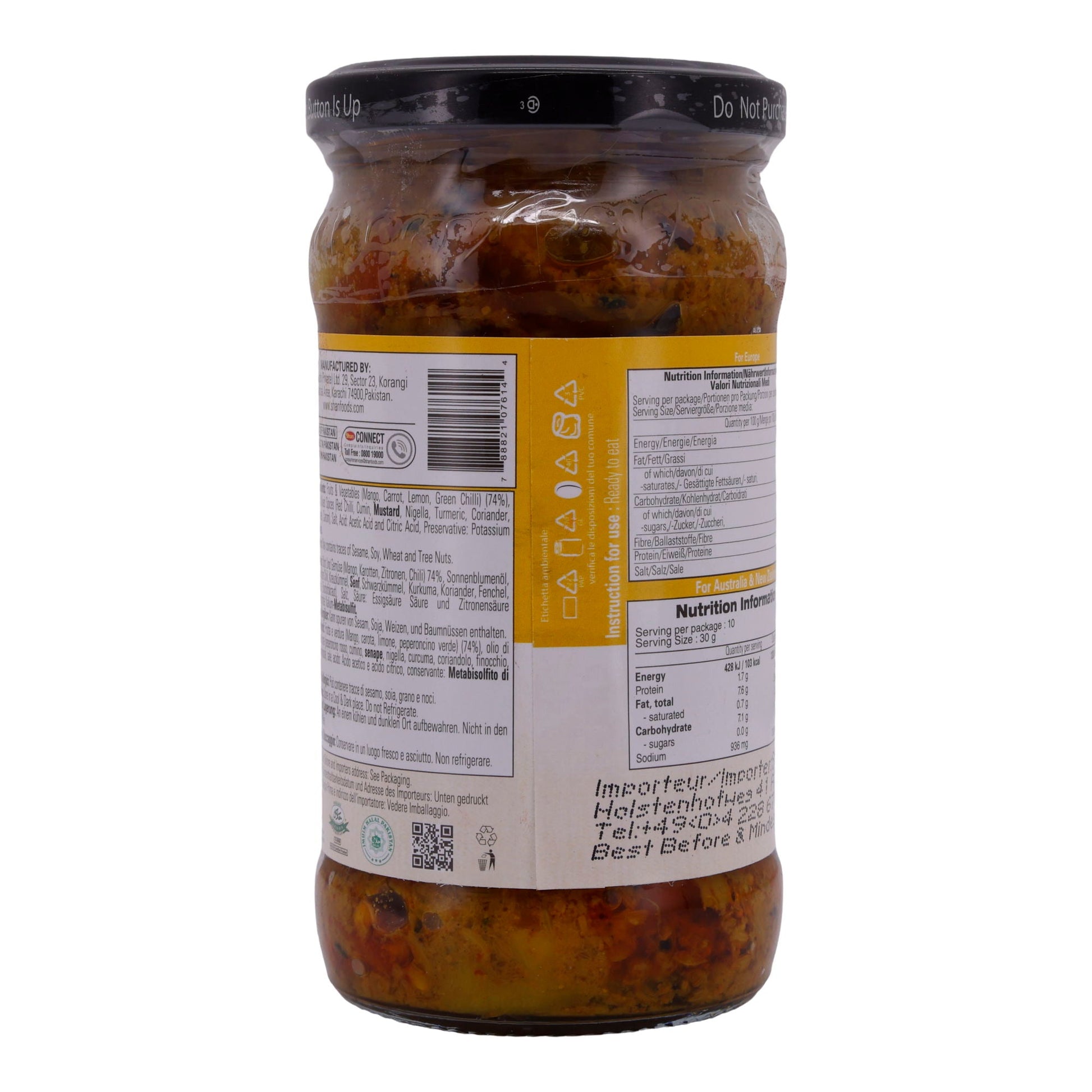 Lagern Sie Mixed Pickle Shan an einem kühlen, trockenen Ort. Nach dem Öffnen sollte es im Kühlschrank aufbewahrt und innerhalb weniger Wochen verbraucht werden, um den Geschmack zu erhalten.