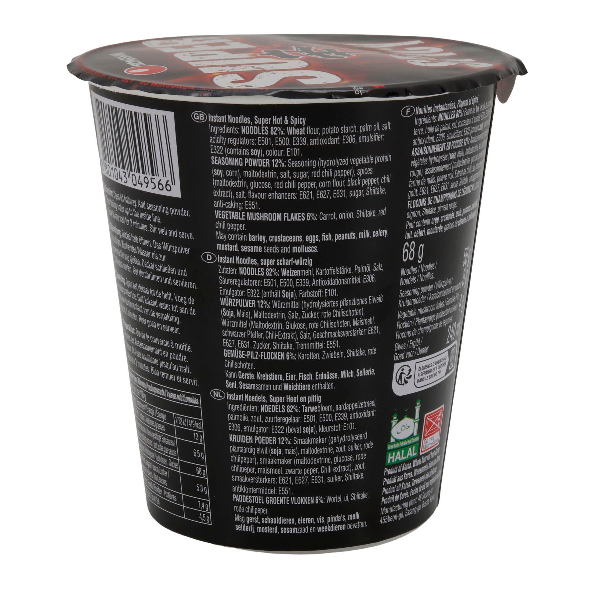 Red Super Spicy Cup Ramen Nongshim liefert intensiven Geschmack für Liebhaber scharfer Speisen.