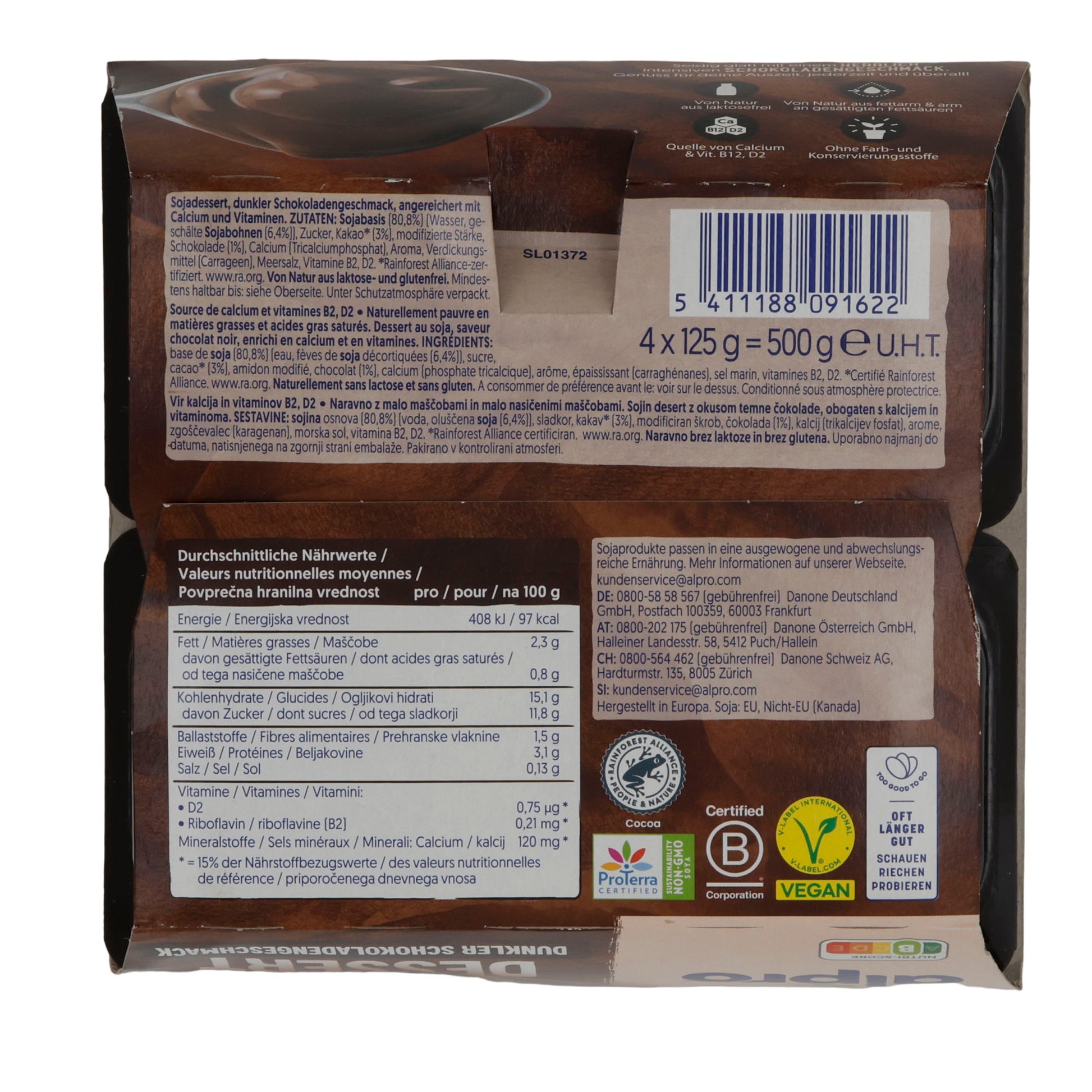 Schokopudding Alpro Dessert Dunkler Schokoladengeschmack bietet ein intensives Kakaoaroma und ist die perfekte pflanzliche Alternative für Genießer.