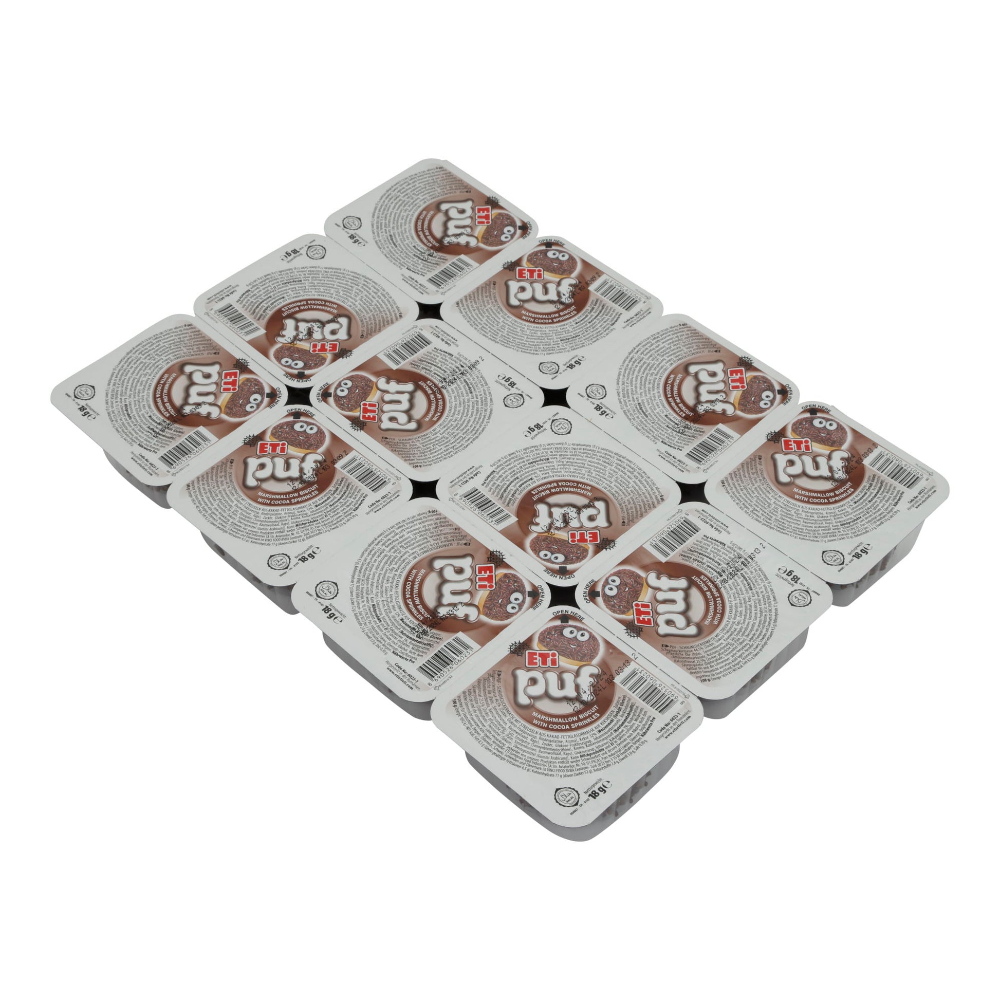Snack ETI Puf | Gebäck | mit Keksbasis und Kakaofüllung | 216 g bietet eine köstliche Kombination aus knusprigem Keks und reichhaltiger Kakaofüllung.