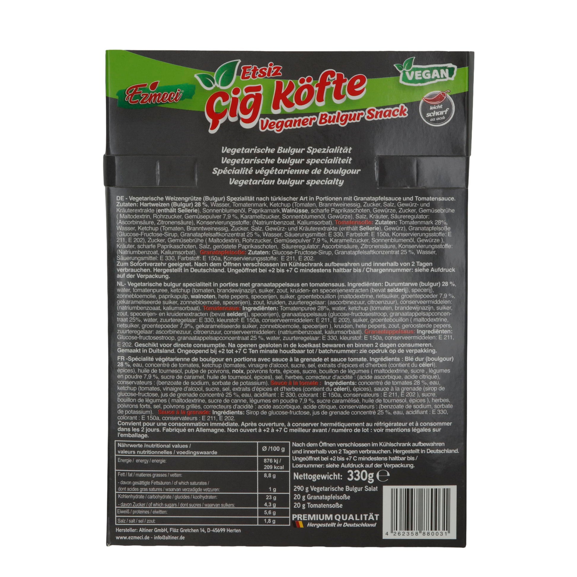 Veganer Bulgur-Snack Ezmeci Etsiz Çiğ Köfte | Veganer Snack | Mit Granatapfelsauce und Tomatensauce | 330 g