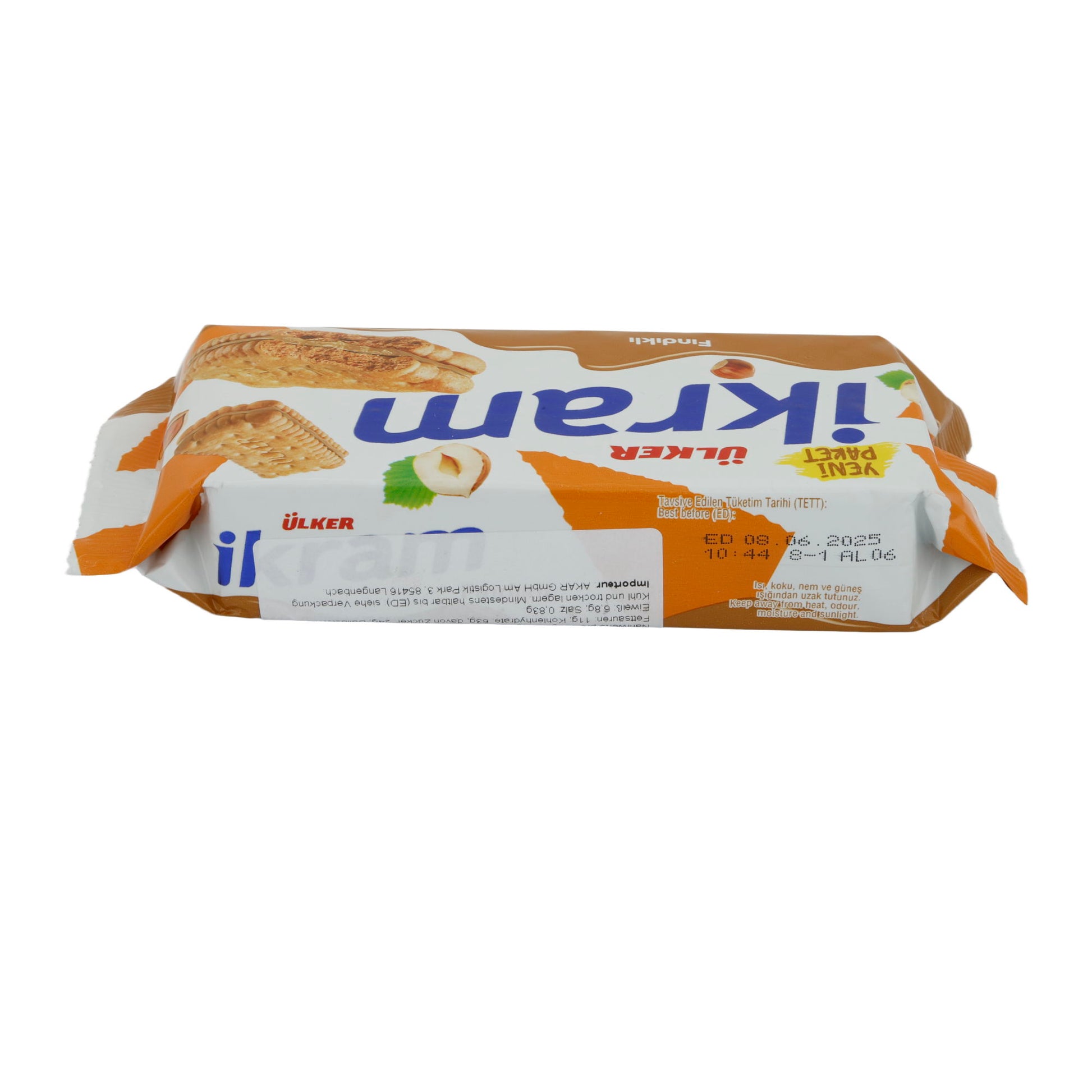 Ülker Ikram Doppelkeks mit Haselnusscreme ist verzehrfertig und eignet sich ideal als Snack zwischendurch, zum Kaffee oder Tee. Die Kekse können auch als süße Komponente auf einem Dessertteller verwendet werden.