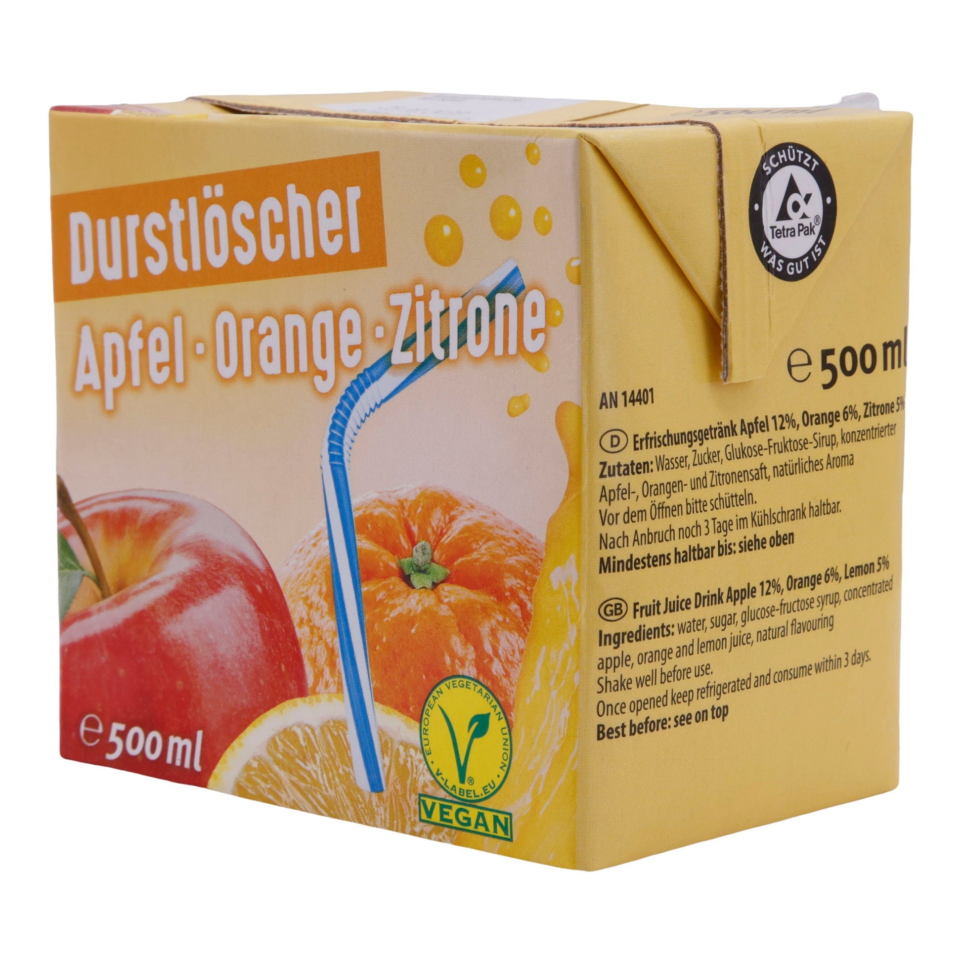 Das Erfrischungsgetränk Durstlöscher Apfel-Orange-Zitrone eignet sich ideal für unterwegs, in der Schule, im Büro oder als erfrischender Begleiter im Alltag. Dank des praktischen Strohhalms ist es sofort trinkbereit.