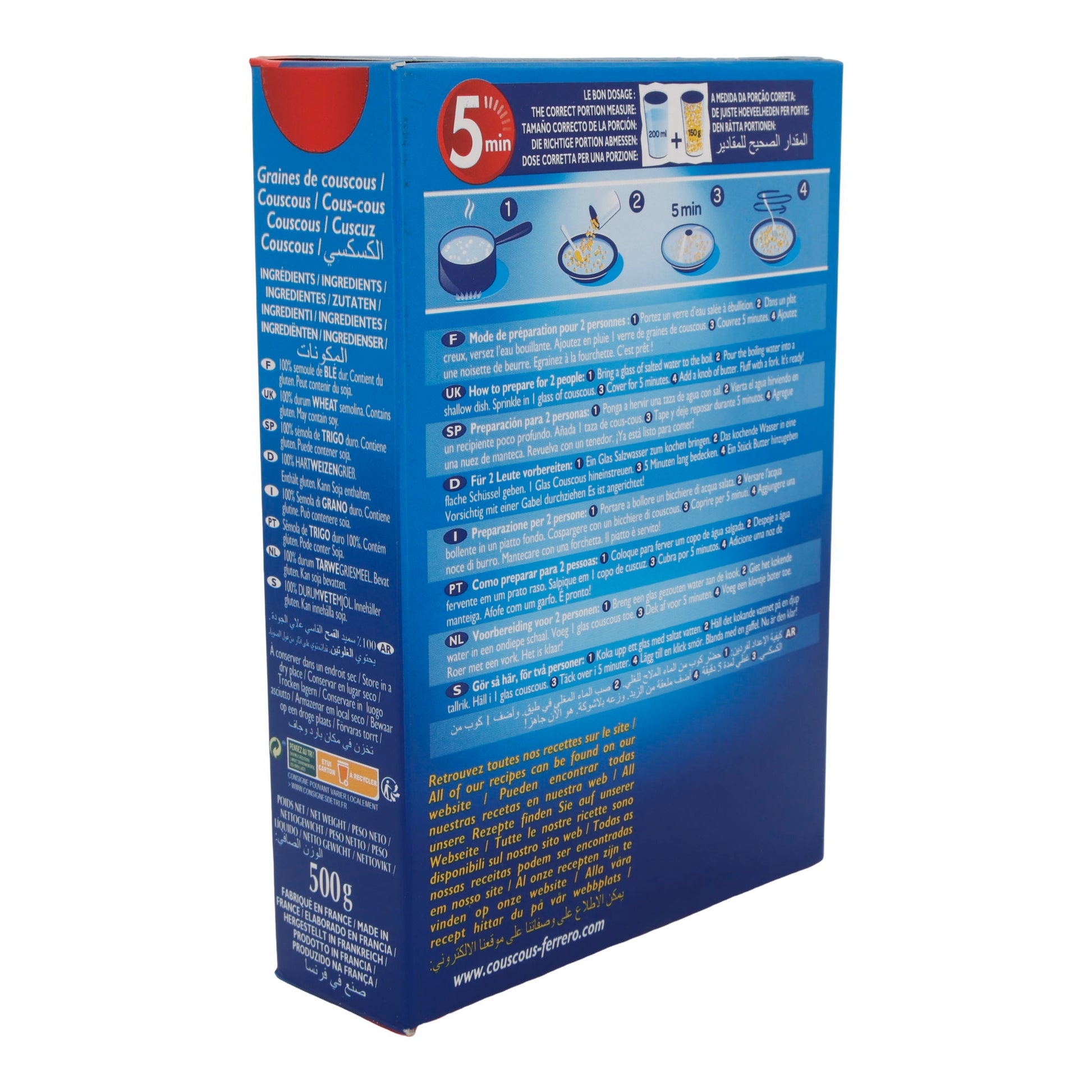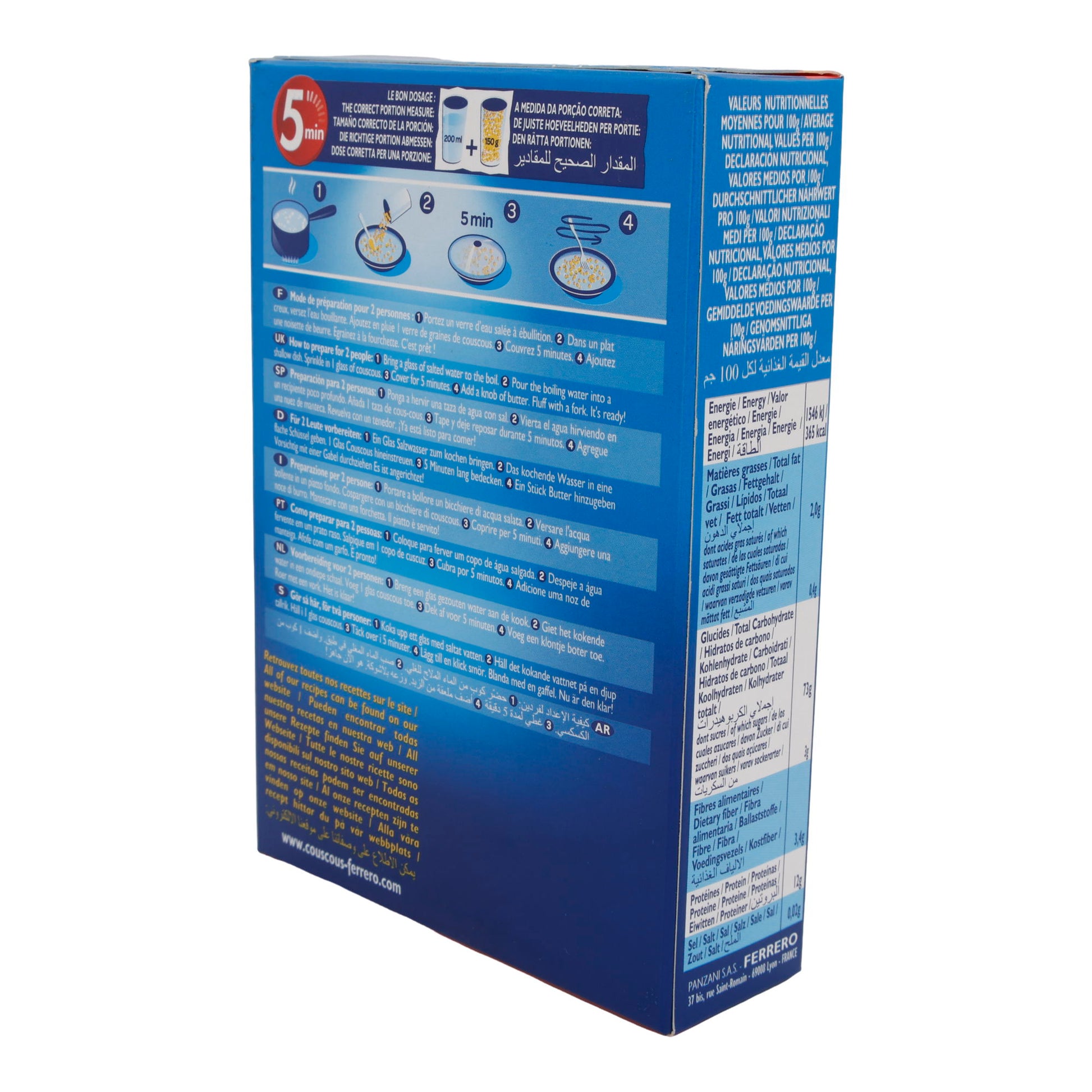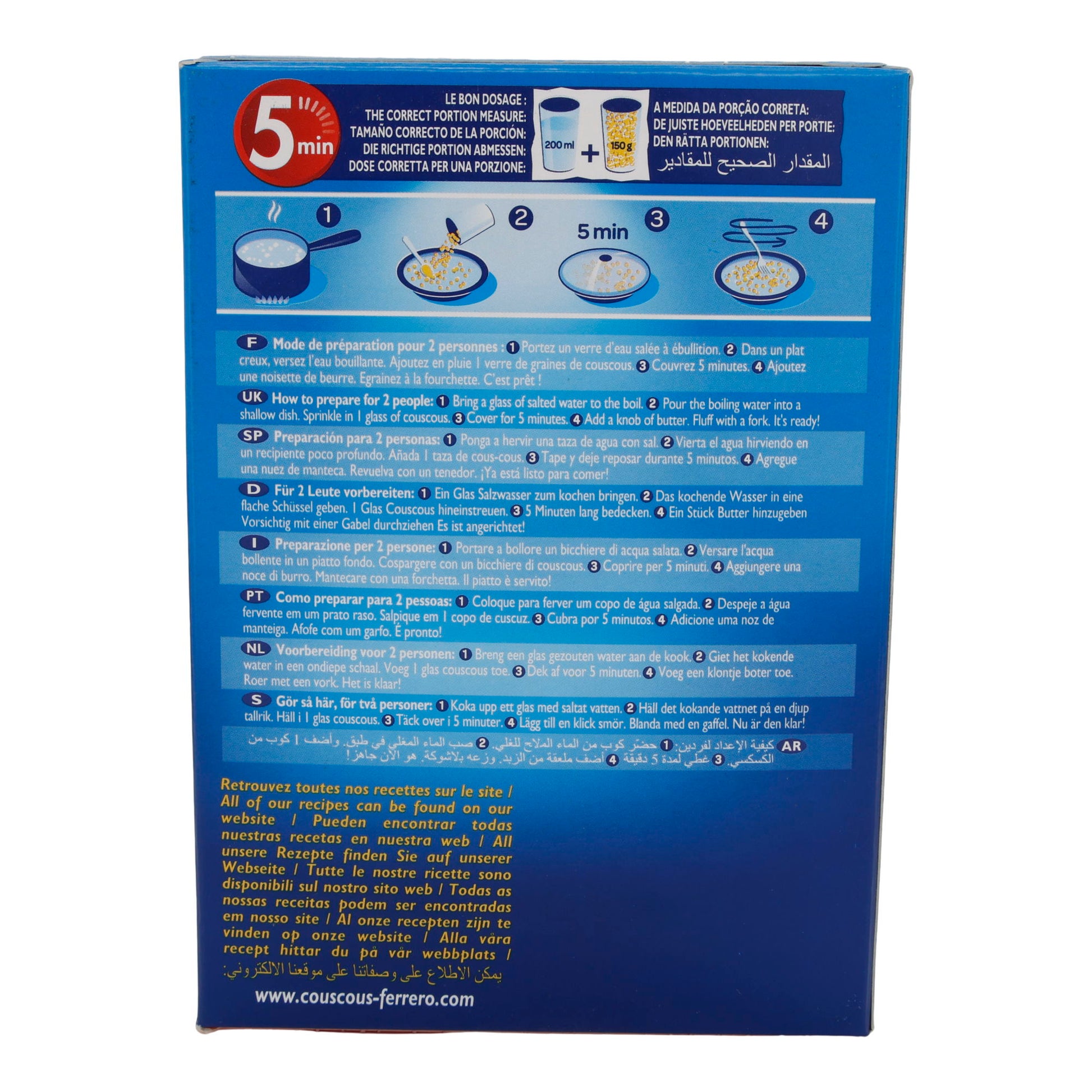 Couscous Ferrero eignet sich ideal als Beilage zu Fleisch, Fisch oder Gemüse, als Basis für Salate oder Füllungen und sogar für süße Gerichte mit Milch und Rosinen.