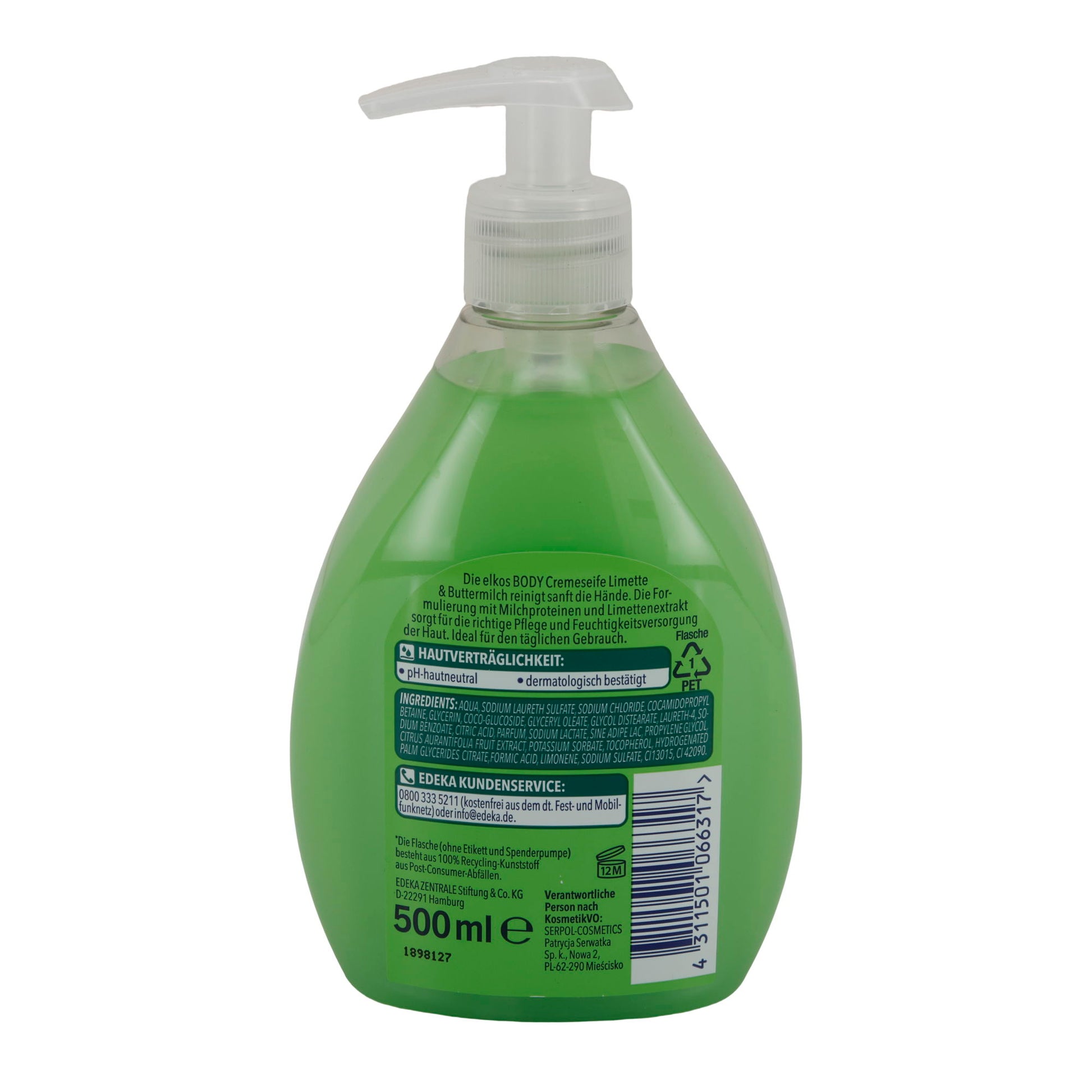 Cremeseife elkos BODY | Limette & Buttermilch | fruchtig duftend | 500 ml sorgt für ein erfrischendes Reinigungserlebnis.
