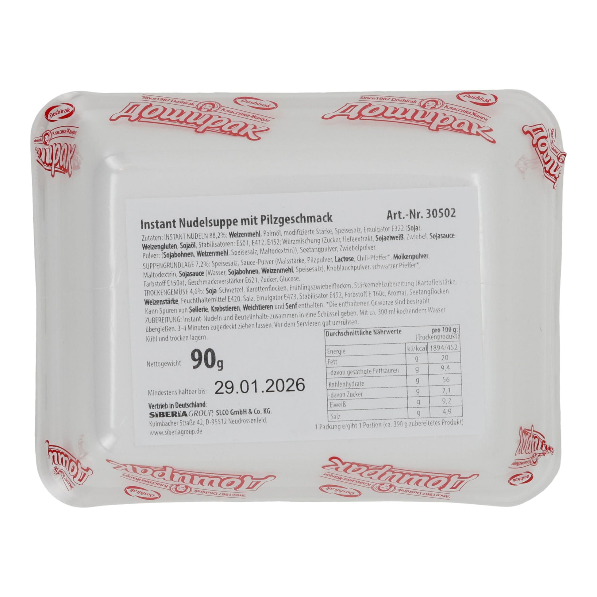 Doshirak Instant-Nudelsuppe mit Pilzgeschmack vereint traditionelles Aroma mit moderner Zubereitung. Die fermentierte Sojasauce, gereift über mehr als 100 Tage, sorgt für einen besonders intensiven Umami-Geschmack. Mit ausgewählten Pilzen und aromatischen Gewürzen ist sie ideal für eine schnelle, sättigende Mahlzeit. Einfach mit heißem Wasser aufgießen und genießen.