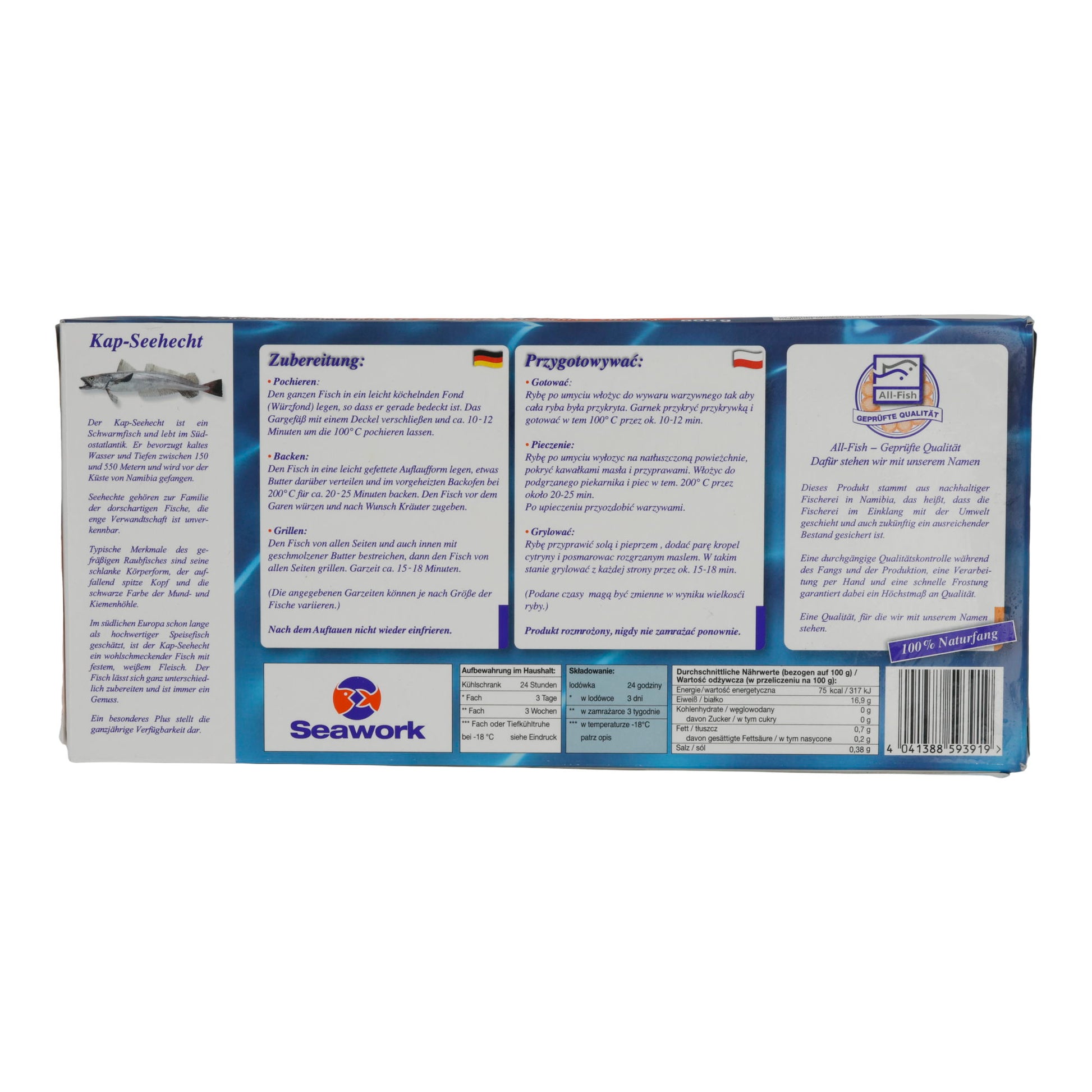 Fisch Seawork | Fisch | Kap-Seehecht, Tiefgefroren, ausgenommen, ohne Kopf | 800g bietet Ihnen hochwertigen Genuss aus dem Süd-Atlantik.