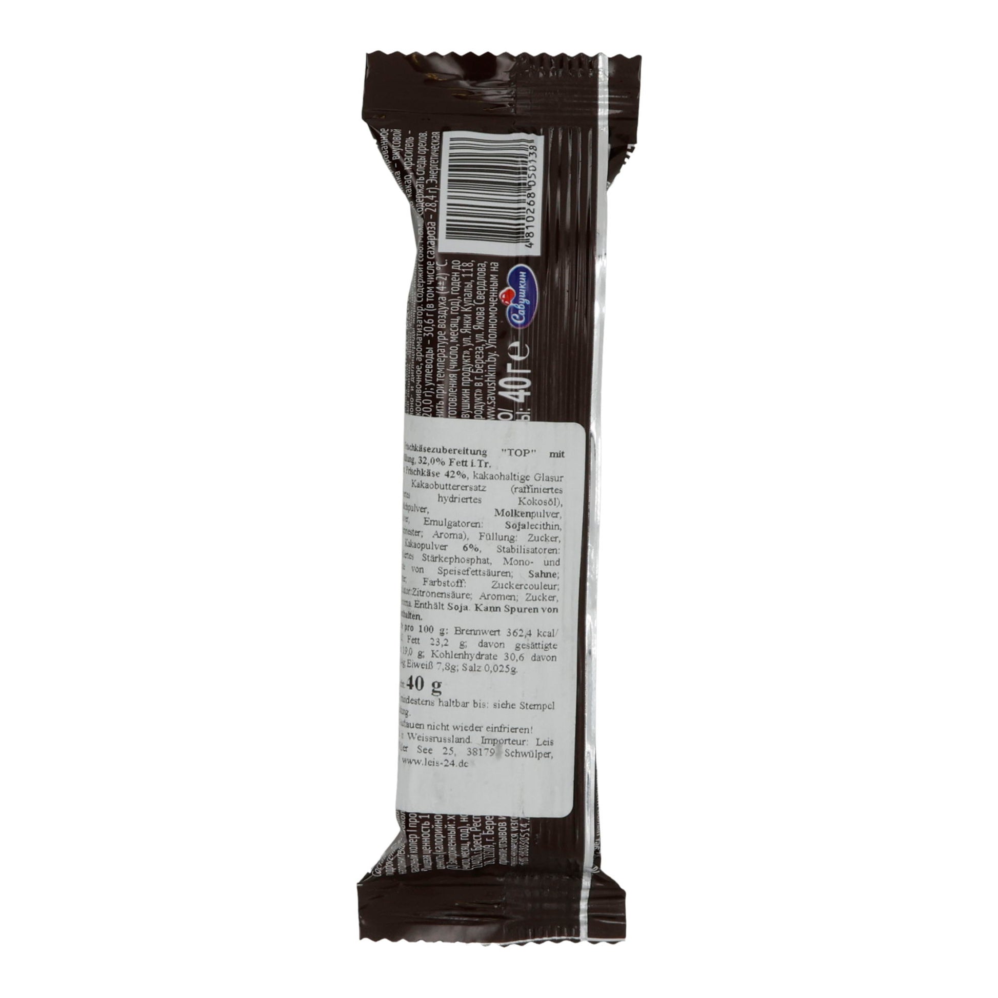 Dieser europäische Spezialitätensnack kombiniert cremigen Frischkäse mit einem zarten Schokoladenüberzug, perfekt für den kleinen Hunger zwischendurch.