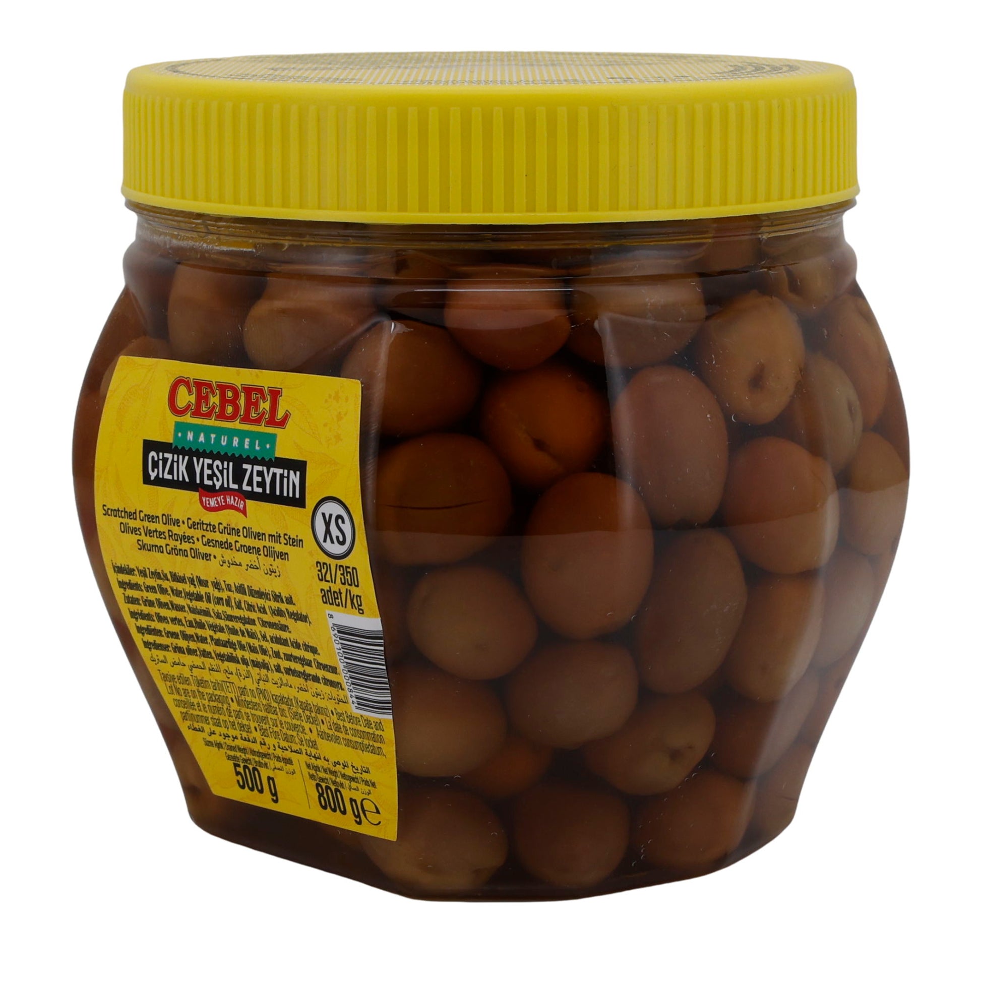 Olive verdi Cebel | Olive incise | Con nocciolo, conservate in salamoia | 800 g