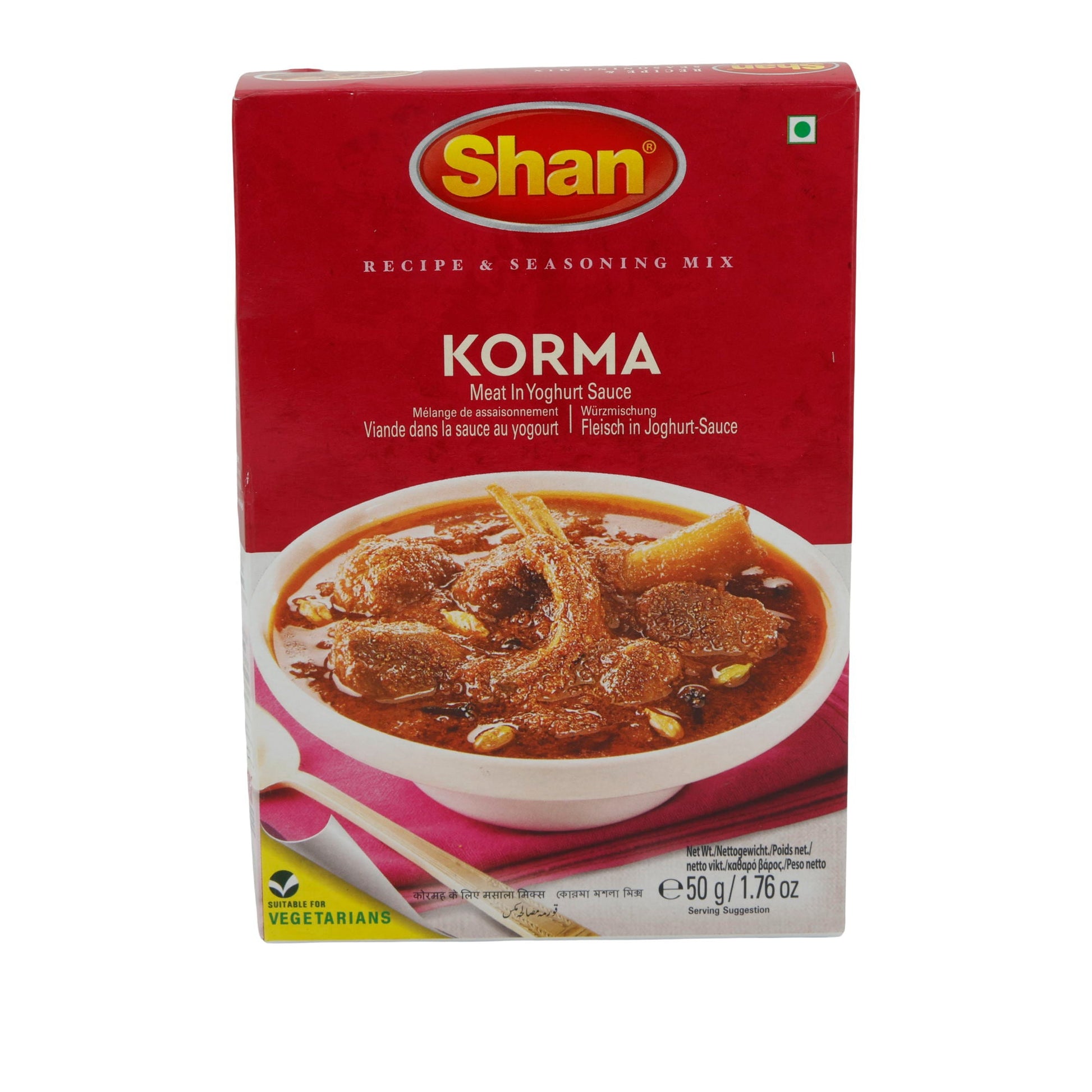 Gewürzmischung Shan | Korma | Für Fleisch in Joghurt-Sauce | 50 g bietet eine authentische indische Geschmacksnote für Ihre Gerichte.