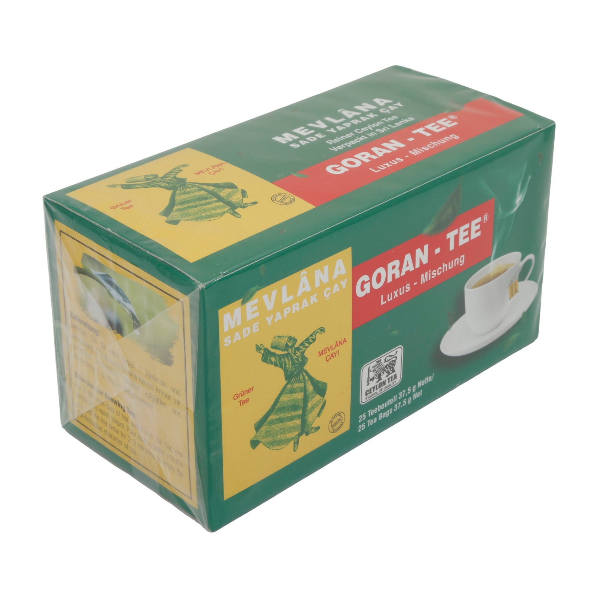 Der Mevlana Grüner Tee von Goran-Tee ist besonders aufgrund seiner 100% Ceylon-Teemischung, die aus großen, gerollten Teeblättern besteht. Diese wachsen im Hochland Sri Lankas unter idealen klimatischen Bedingungen und bieten ein kräftiges, aromatisches Geschmacksprofil.
