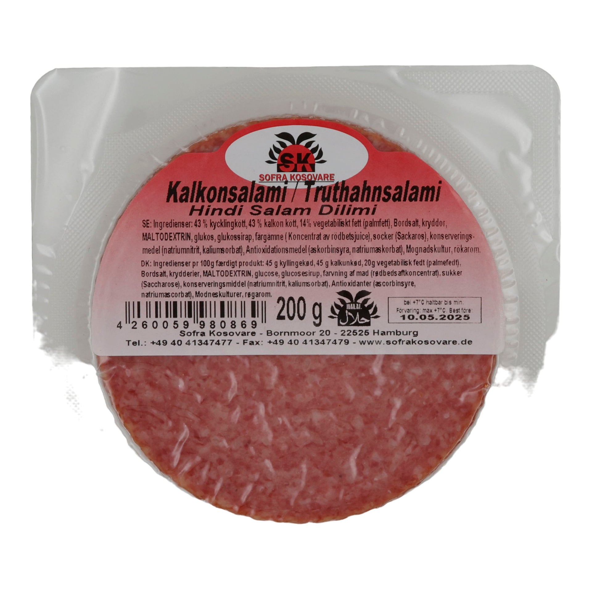 - Halal-zertifizierte Truthahnsalami