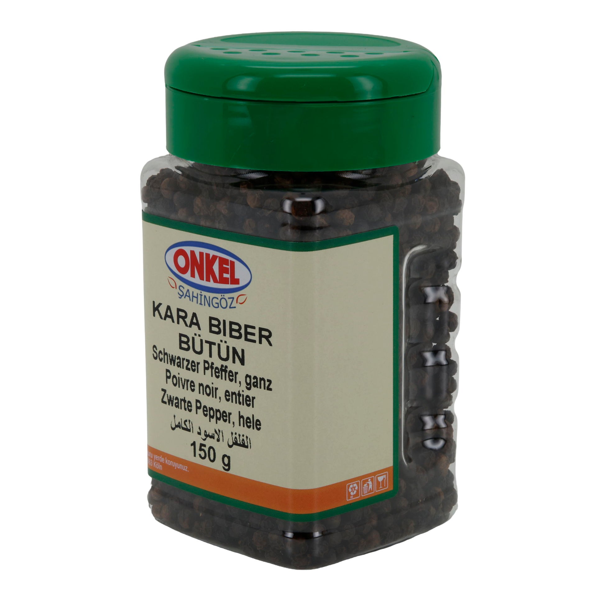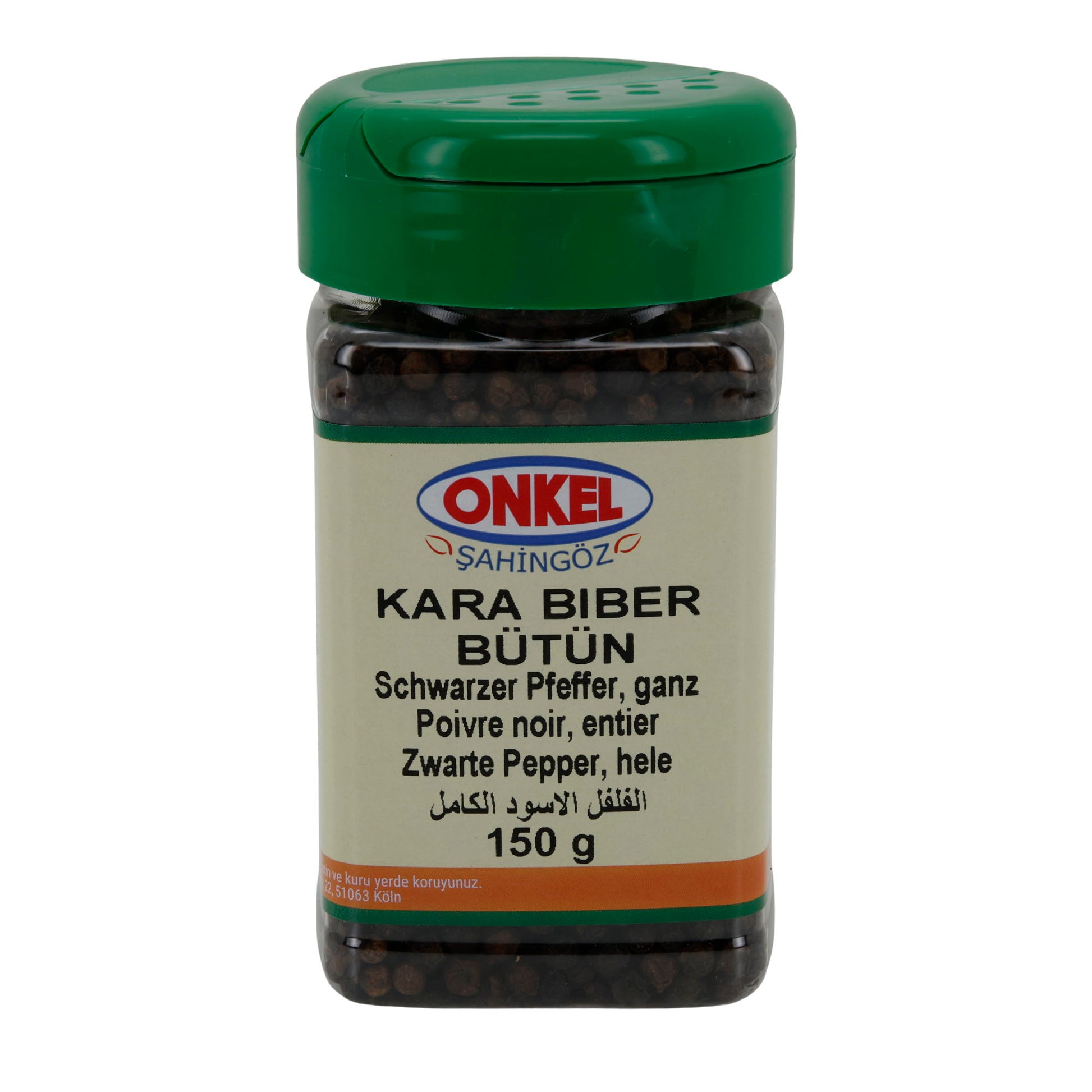 Onkel Kara Biber Bütün – Schwarzer Pfeffer, ganz, 150 g bietet intensiven Geschmack für Ihre Gerichte.