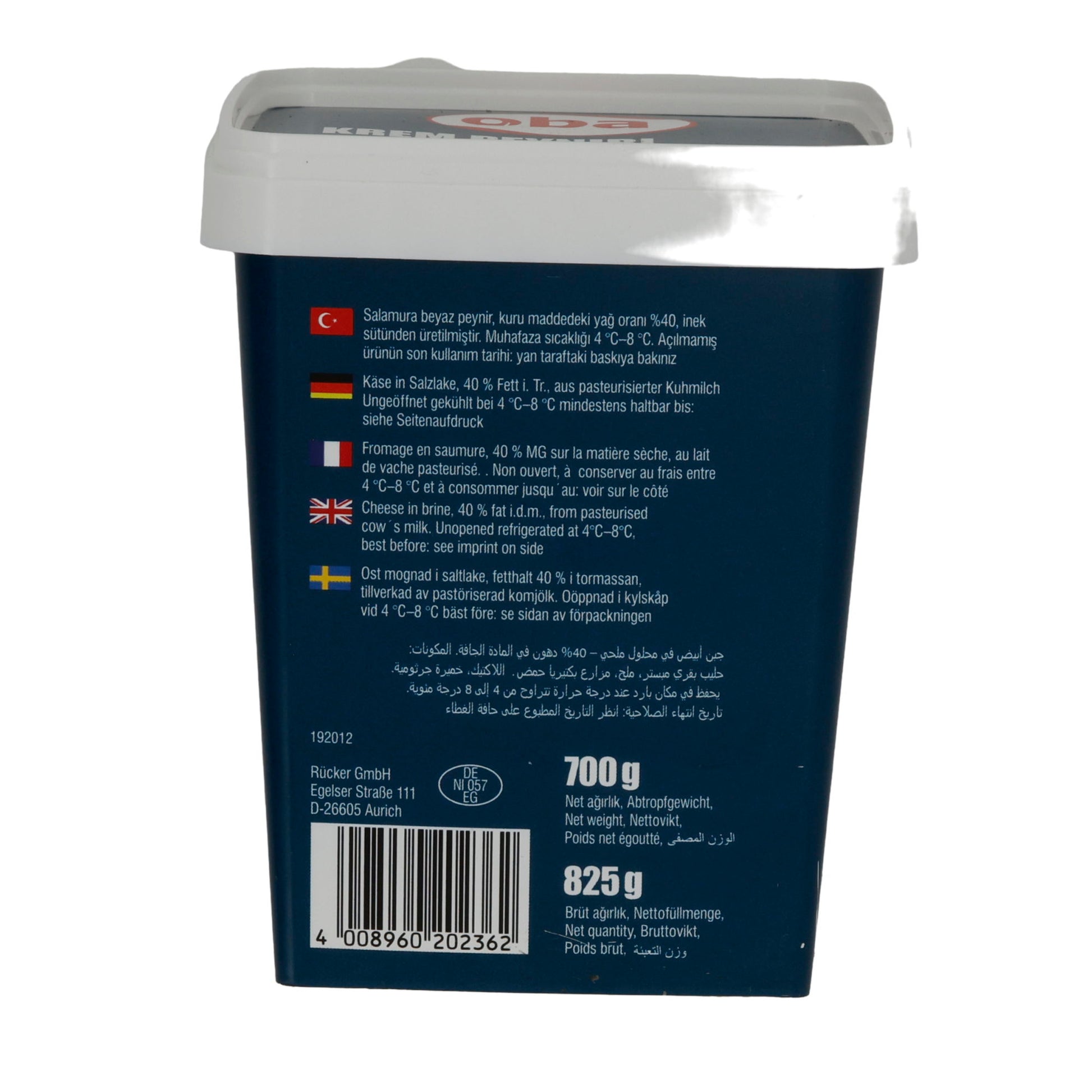 Krem Peyniri Oba | Weißkäse | Cremig in Salzlake | 700 g bietet authentischen Geschmack und cremige Textur. Perfekt für Liebhaber europäischer Spezialitäten.