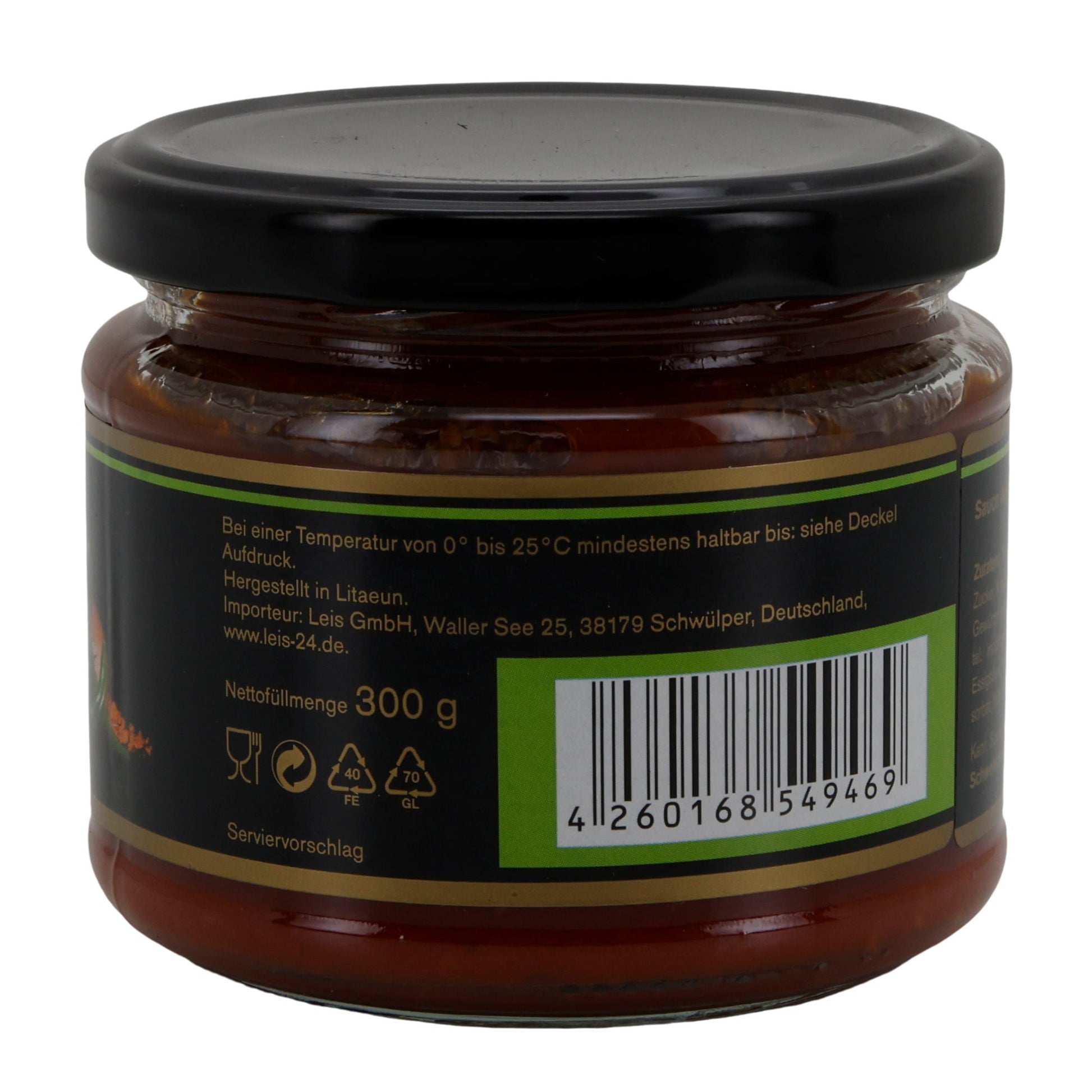 Die Leis Adjika süß-scharf ist eine traditionelle, pikant-süße Würzsauce, die auf Tomatenbasis hergestellt wird und mit Knoblauch sowie scharfer Paprika verfeinert ist. Sie eignet sich ideal als Dip, Marinade oder zum Verfeinern von Fleisch-, Fisch- und Gemüsegerichten. Die cremige Konsistenz und der ausgewogene Geschmack machen sie zu einem beliebten Begleiter für die feurige Küche.