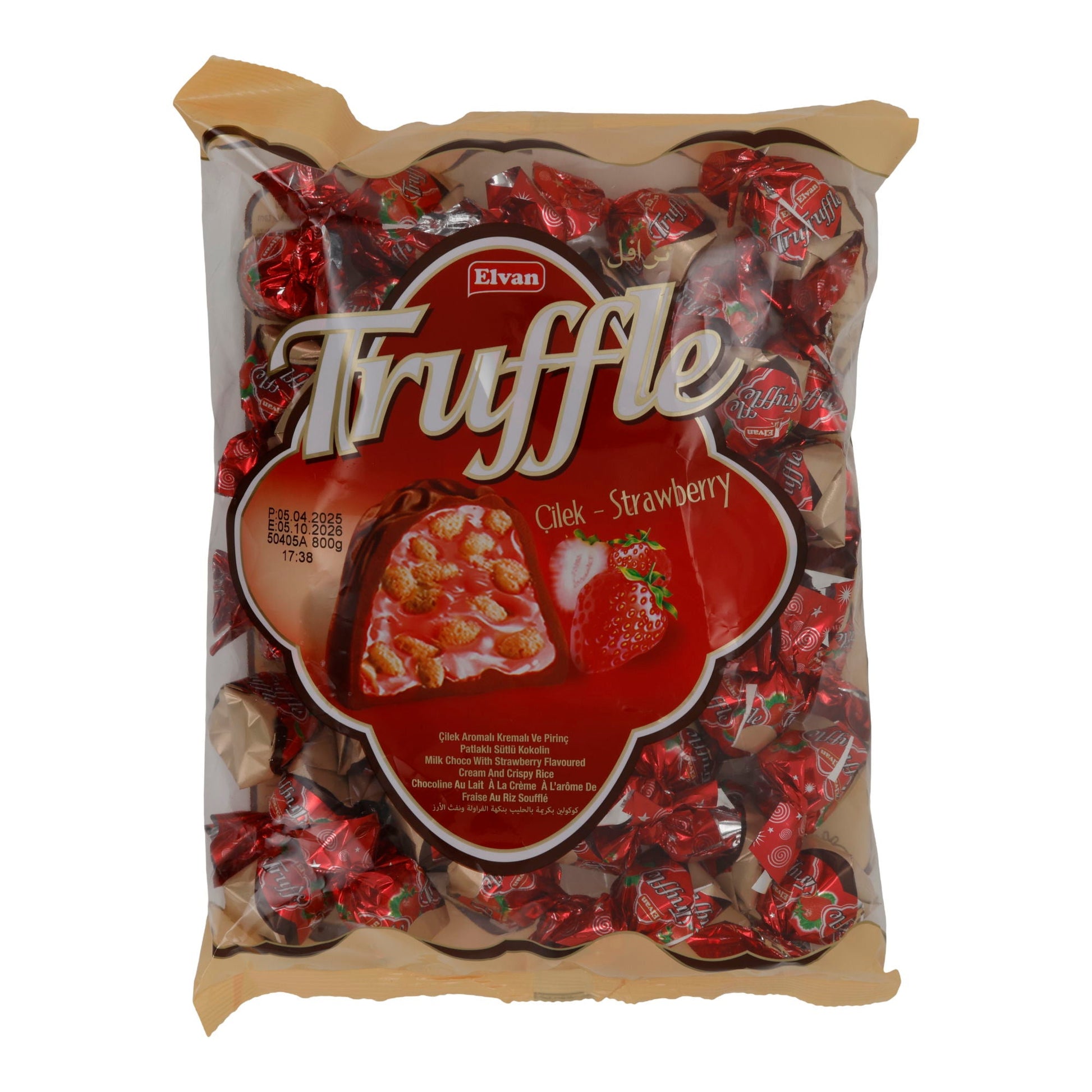 Die Kombination aus zart schmelzender Milchschokolade, fruchtiger Erdbeercreme und knusprigem Puffreis verleiht der Elvan Truffle Erdbeer-Praline ein einzigartiges Geschmackserlebnis. Der 800 g Beutel ist ideal zum Teilen oder Verschenken.