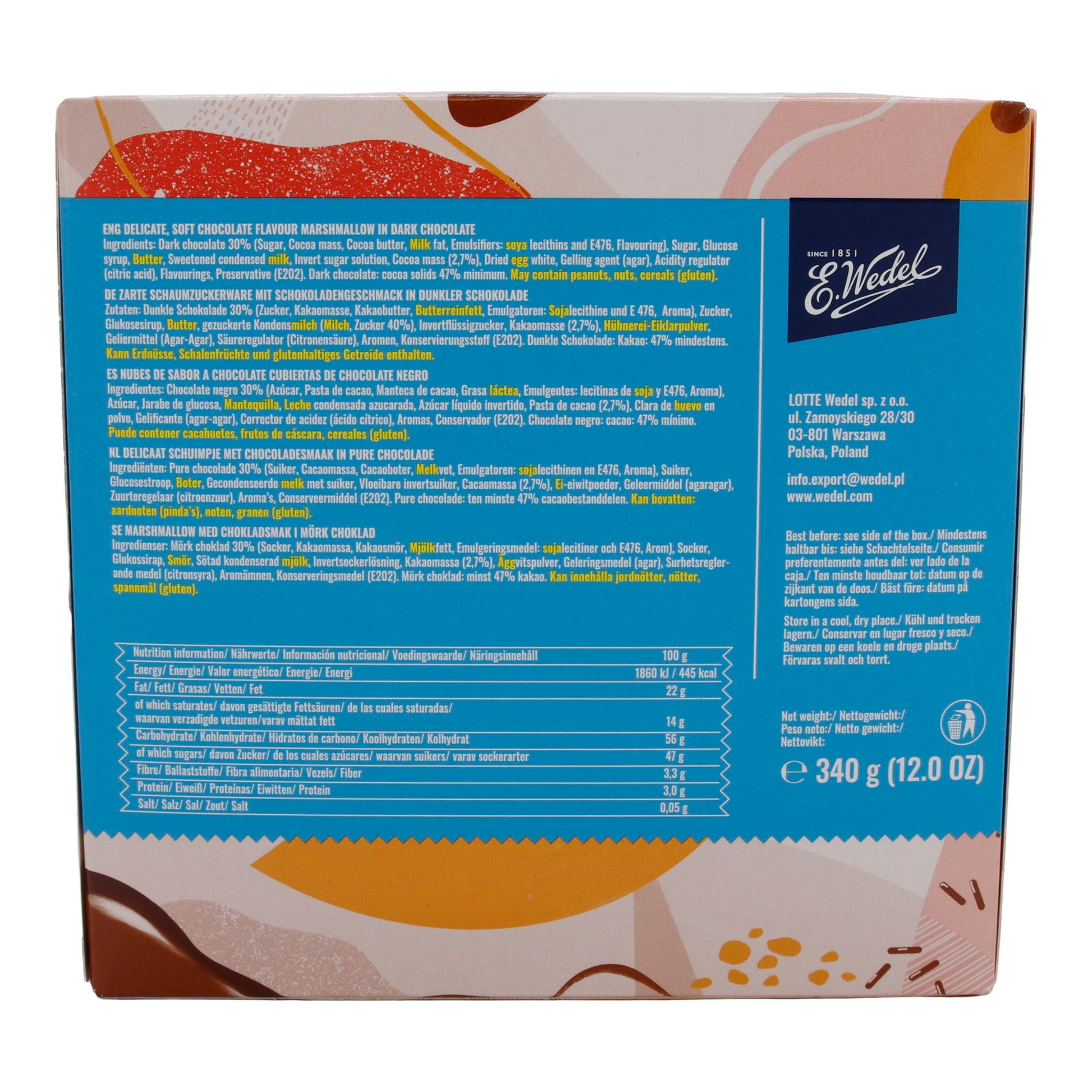 Diese europäische Spezialität von Wedel kombiniert zarten Marshmallow mit hochwertiger dunkler Schokolade.