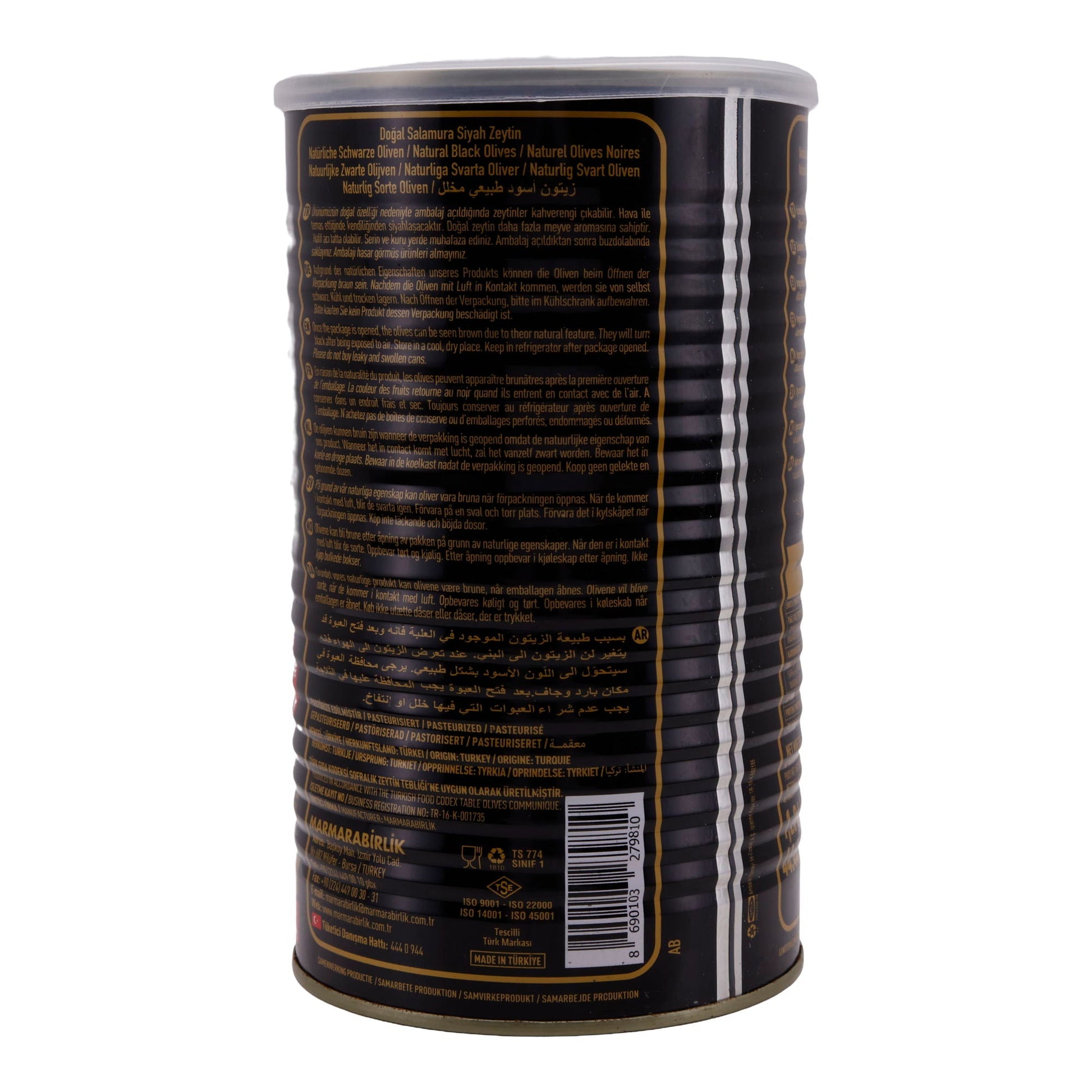 Oliven Marmarabirlik Gold | Natürliche Schwarze Oliven | Milde Oliven in Salzlake | 1,4 kg bietet authentischen Geschmack der türkischen Küche.