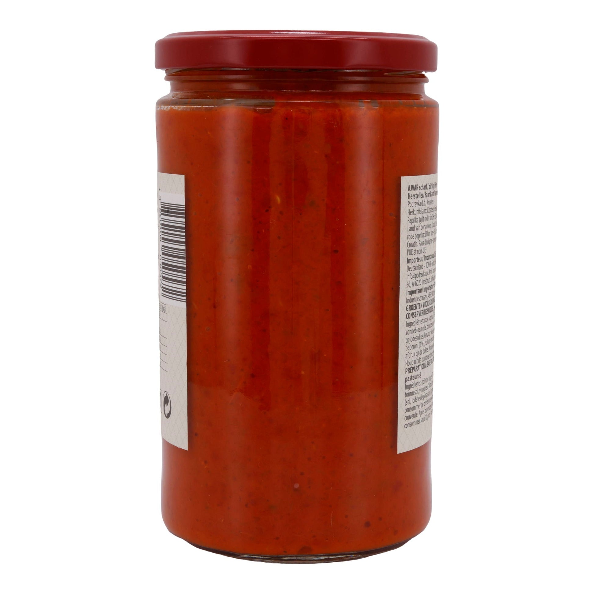 Diese Paprikapaste ist authentisch und vegan, hergestellt aus 73% gerösteten roten Paprika und 12% Auberginen. Sie enthält keine künstlichen Konservierungsstoffe und bietet ein rauchiges Aroma.